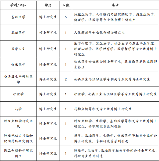 拟引进优秀高层次人才15人(事业编制),具体需求见下表。