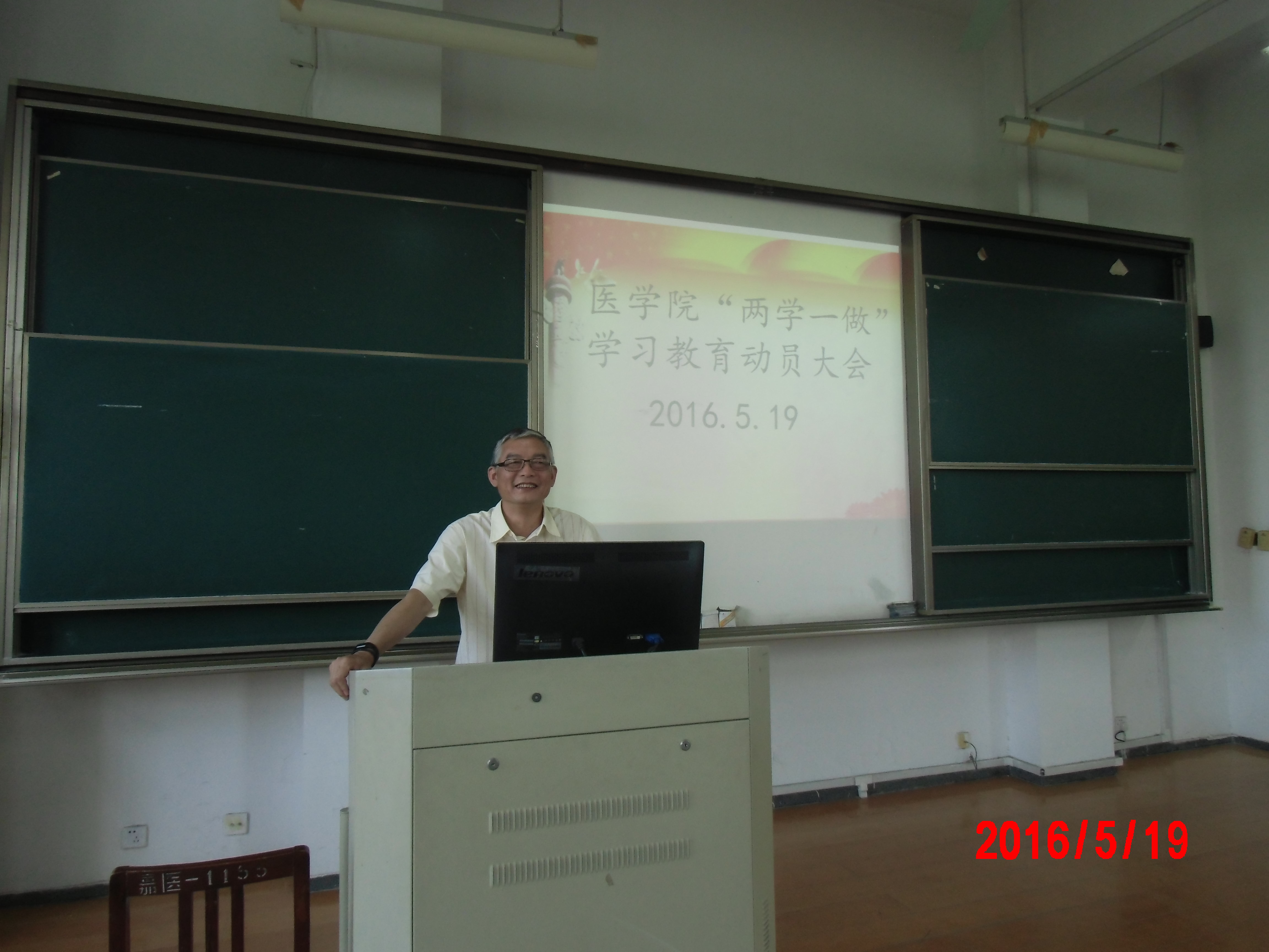 2016年5月19日下午,探花av 举行“两学一做”学习教育动员大会,对学院全体师生党员开展“两学一做”学习教育动员部署。院党委书记惠太望主持会议并作动员报告,他强调,“两学一做”学习教育是加强党的思想政治建设的一项重大部署,各级基层党组织要履行抓好“两学一做”学习教育的主体责任,突出问题导向,确保取得实际成效,把从严治党落实到每个支部、落实到每名党员。