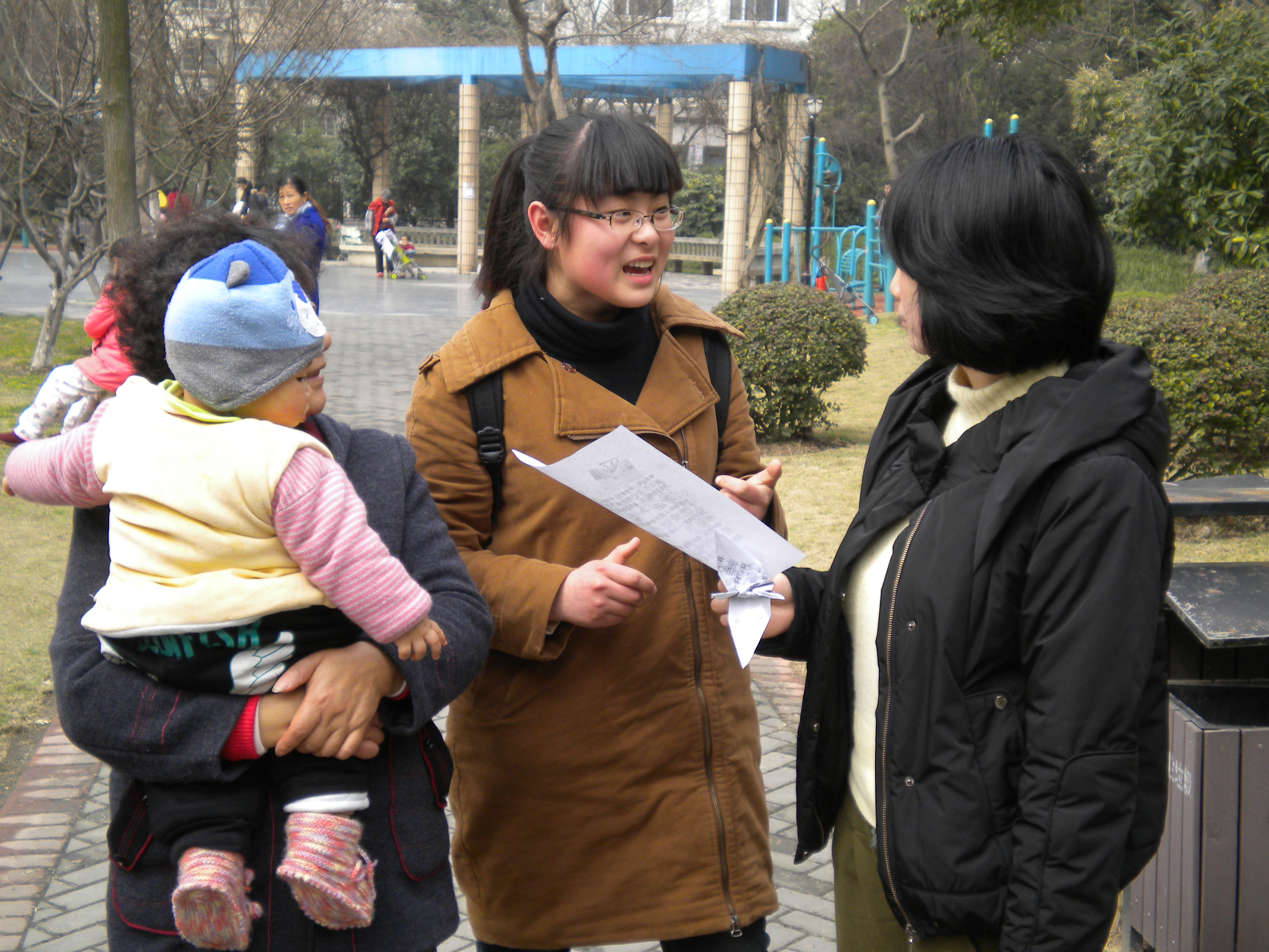 在大家的努力下,相机的镜头里收集了许多充满爱的笑容,整个公园洋溢着爱的气息。