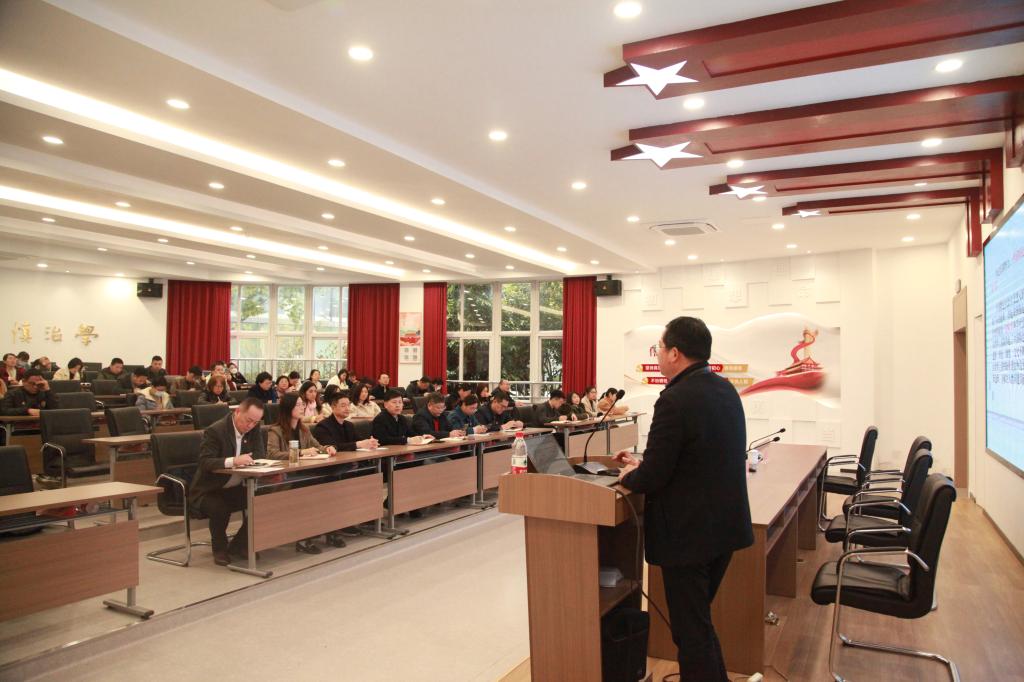 首先,吴书记开宗明义的指出:领会把握党的二十大报告的核心要义,有助于认清我国所处的新的历史方位,有助于深刻感悟马克思主义中国化时代化的发展历程,有助于全面贯彻落实习近平新时代中国特色社会主义思想。接着,吴书记提纲挈领的提出:要从“一个主题”中理解把握团结奋斗的时代使命;从“两个行”中理解把握中国式现代化的丰富内涵;从“三件大事”中理解把握新时代十年的伟大变革;从“四个之问”中理解把握“五位一体”总体布局和“四个全面”战略布局;从“五个必由之路”中理解把握“三个务必”的现实要求;从“六个坚持”中理解把握“两个确立”的决定性意义;从“七个方面主要任务”中理解把握“两个永远在路上”的坚定清醒。最后,吴书记着重强调校、院两级党委要坚持系统观念,以数字化改革和系统性重塑为契机,把握方向、抓住重点、完善机制、突破难事,以大党建思路,整合资源要素,加快应用场景开发,助推党建大脑(协调推进监督、组工、统战等领域)建设,以高质量党建推进学校高质量发展。