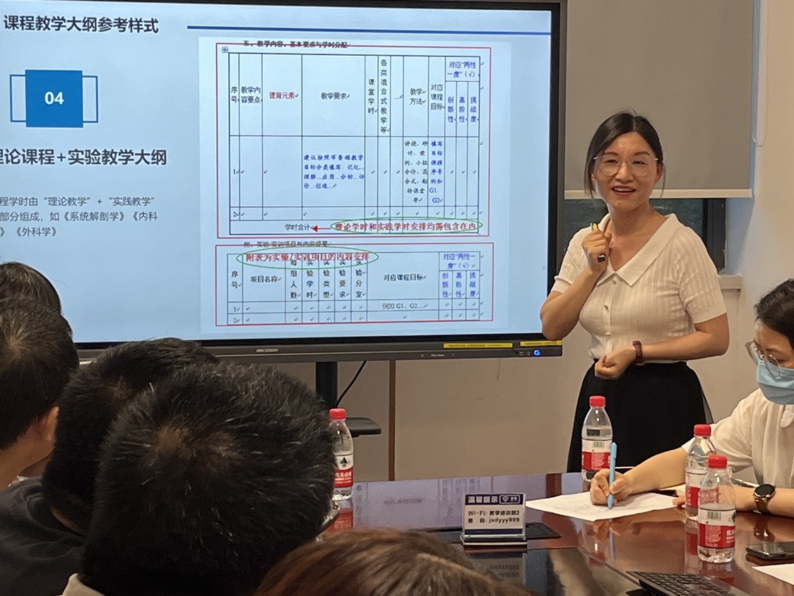 新版教学大纲坚持“OBE”理念导向、突出目标引领、强化教学创新、优化课程教学。为了更好地推进2022版教学大纲的编写工作,9月8日晚上探花av 教务办主任刘托平在嘉兴学院附属医院,为医院的教学大纲编写小组召开了一次培训会议。培训中详细讲解了课程教学参考样式以及编(修)订注意事项。会后,老师们对大纲的修订工作进行了充分的交流和讨论,为临床医学专业同质化教学奠定了基础。