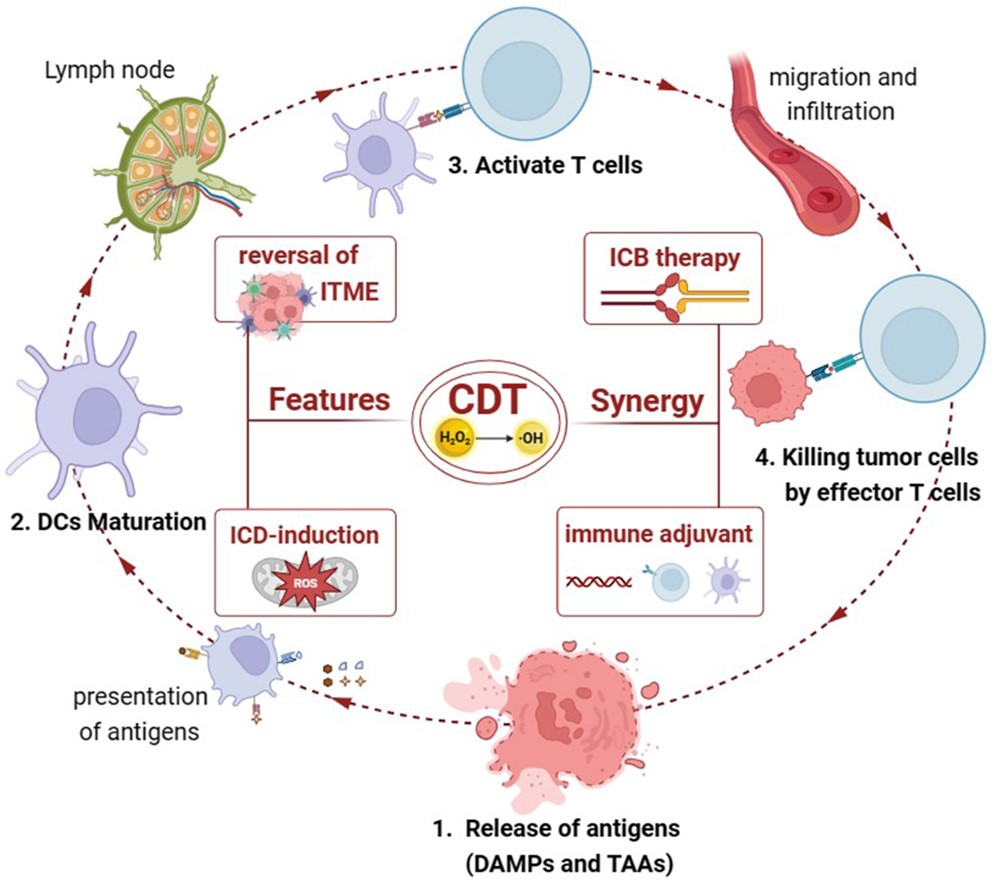 图1. 基于纳米平台联合CDT/免疫疗法的示意图。