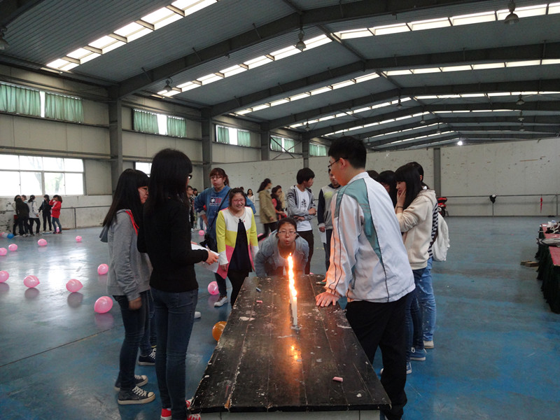 本次挑战寝室吉尼斯活动共分为5场比赛,所有参赛队员均以寝室为单位,全员参赛。经过五场比赛之后,由工作人员按成绩高低评选出男生和女生中“体重最轻寝室”、“身高最高寝室”、“肺活量最大寝室”、“疯狂猜猜猜最快寝室”、“定点投篮最准寝室”十个寝室之最。“肺活量最大寝室”,由吹蜡烛的方式体现,参赛者距离蜡烛1M远,统计每寝每人一口气所吹灭的蜡烛数量,把平均值作为各队该项目的最终结果。只见个个腮帮鼓起,用力向前吹。有的同学其向前的搞怪姿势及失败后的叹气让周围观看比赛的同学忍俊不禁。“疯狂猜猜猜”则由每寝一个同学从事先准备好的试题箱中抽取八个包含电视剧名称、名人名言、游戏人物装备等题目,计时猜出各正确答案,中间跳过一个题目加5S。比赛中,参赛者们全神贯注,互相交流,共同寻解。同时进行的还有定点投篮、称体重、量身高比赛。现场笑声阵阵,后进来的同学都被这活跃的气氛感染,迅速参与进来。