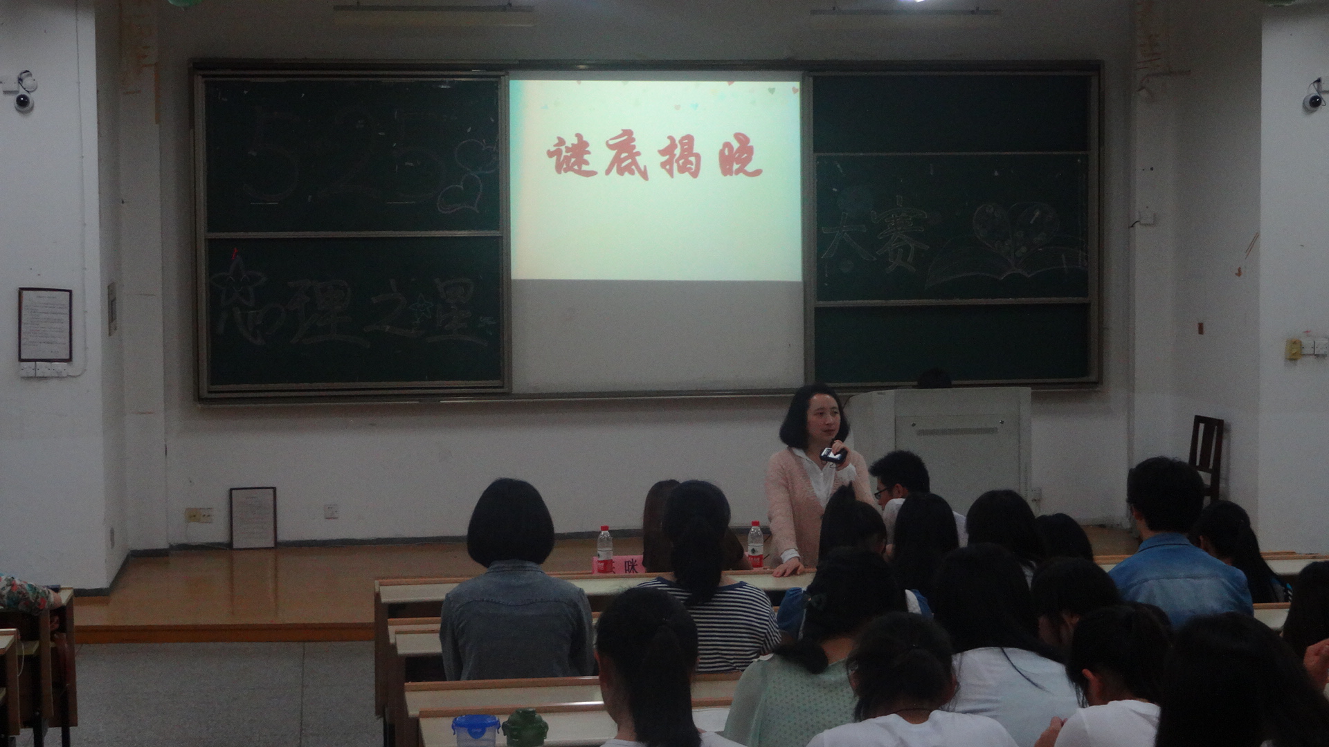 心理之星决赛在一号楼221教室火热进行。出席本次决赛的嘉宾有学工办江欢老师,团委组织委员陈咪,学生会办公室主任卢阳柏。