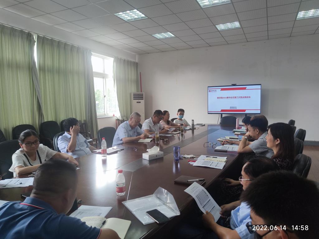 召开2022年第三次就业推进会。学院党委书记陈云飞、党委副书记李联钊、副院长徐营出席会议,各系部主任、毕业班班主任、就业辅导员参会。会议由李联钊副书记主持。