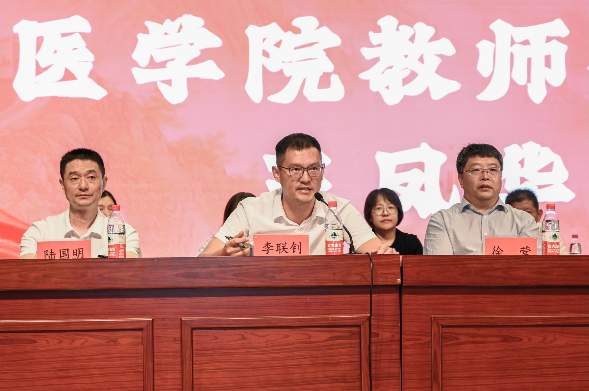 院学生会主席团执行主席医本221班刘铭锌同学作为学生干部代表发言:请告别昨天、把握今天、奔赴未来,让我们怀着对医学事业的热爱和热忱,牢记精诚仁爱的院训,学思用结合、知信行合一,用点滴努力汇聚汪洋大海,为推进人民健康事业高质量发展贡献青春力量!