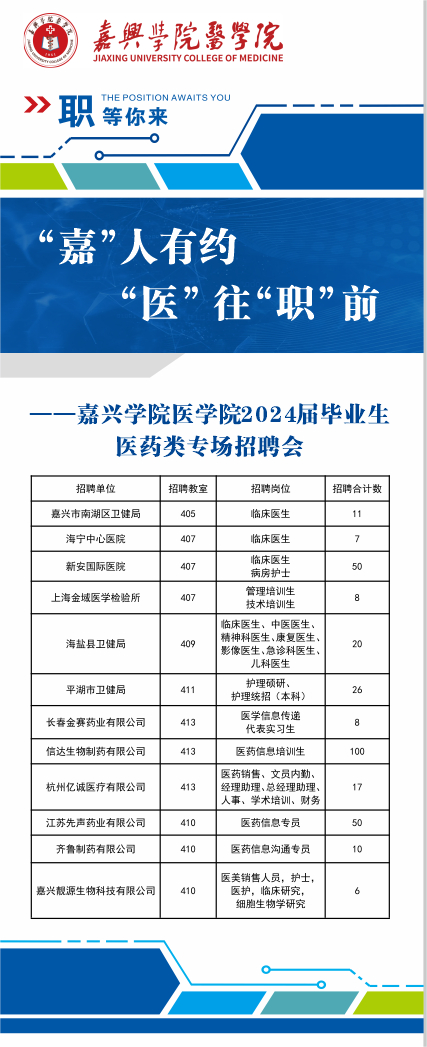 本次招聘会邀请了嘉兴市南湖区、海盐县、平湖市三家卫健局协同下属16家医疗卫生单位参加,浙江新安国际医院、海宁中心医院到校与毕业生面对面洽谈,上海金域医学研究所、金赛药业、信达生物、先声药业等7家优质医药类企业参与招聘。岗位涉及临床医生、护理人员、临床研究、细胞生物学研究、医药信息专员等200余个岗位,涵盖探花av 本科毕业生所有专业。三家卫健局更是在当天下午直接安排校内考试,毕业生通过相关考核后即可拟定签约。