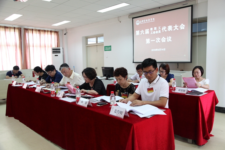 六届一次教职工暨工会会员代表大会在2号楼601会议室召开,37名正式代表出席大会。工会副主席姜肖明主持会议。