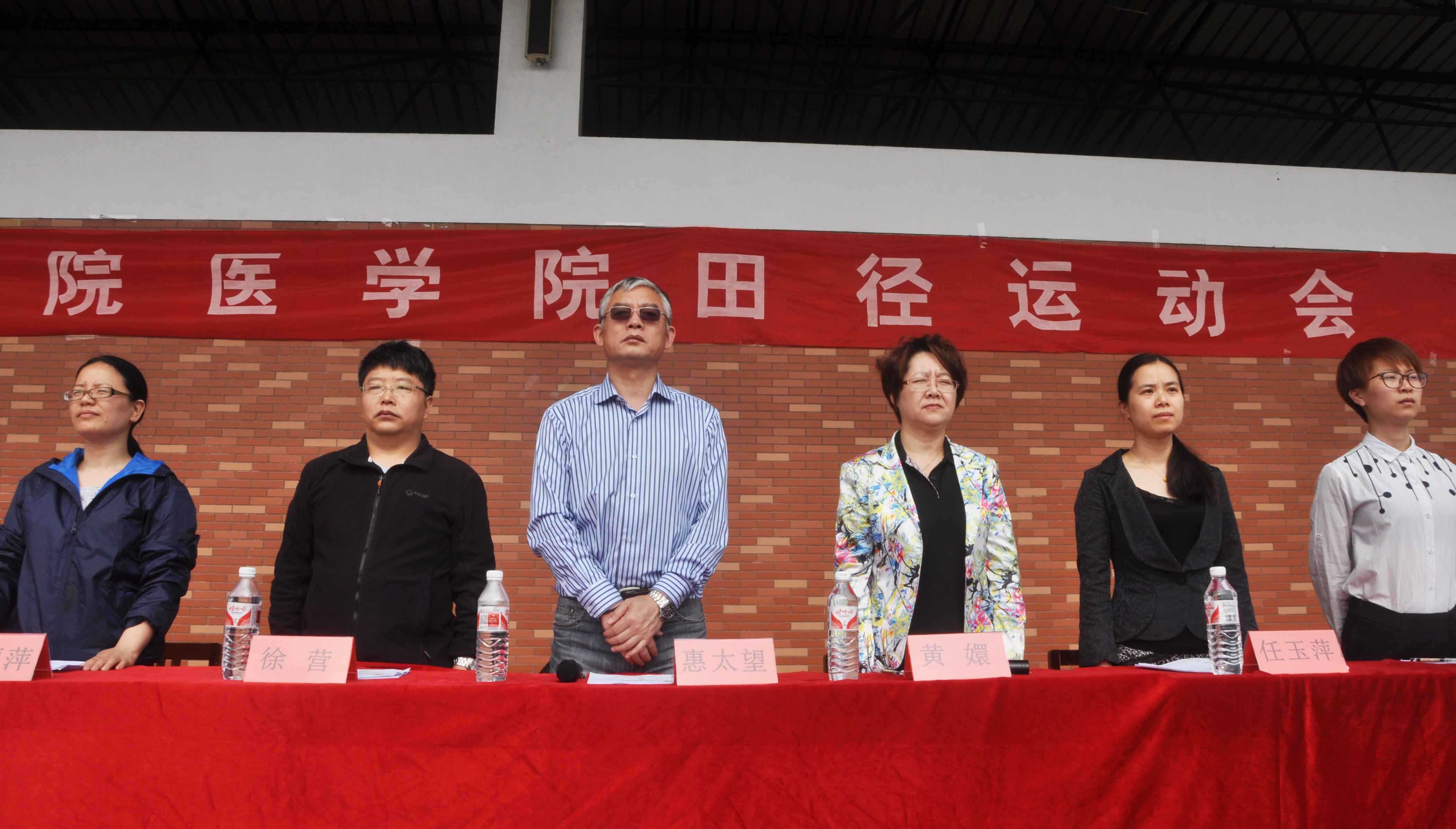 党委书记惠太望老师、常务副院长黄嬛老师、副院长徐营老师、党委副书记任玉萍老师和学生会主席高青婷出席了本次运动会开幕式。主持本次开幕式的是学工办主任赵丽萍老师。