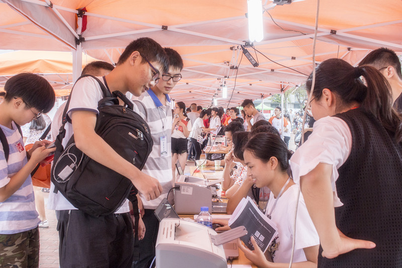做了详细周到的计划和部署。在迎新现场,新生接待员为每位新生发放入学手册,指导新生按流程报名注册和入住宿舍以及学生安全教育知识试题。校园里也有一群志愿者自愿担任接待新生的任务,给新生们带路,为新生提行李,面对新生的问题,志愿者们都一一细心解答。