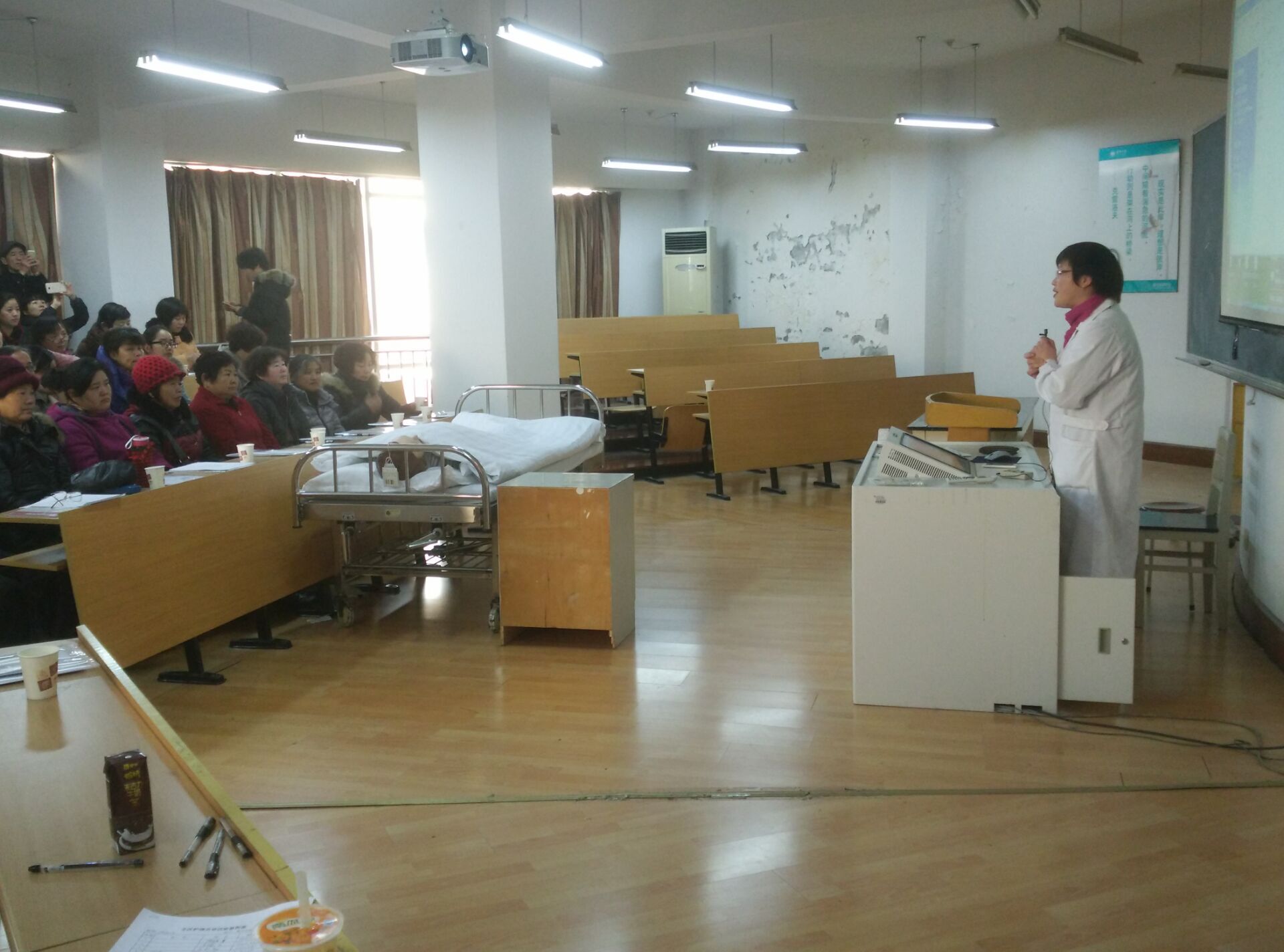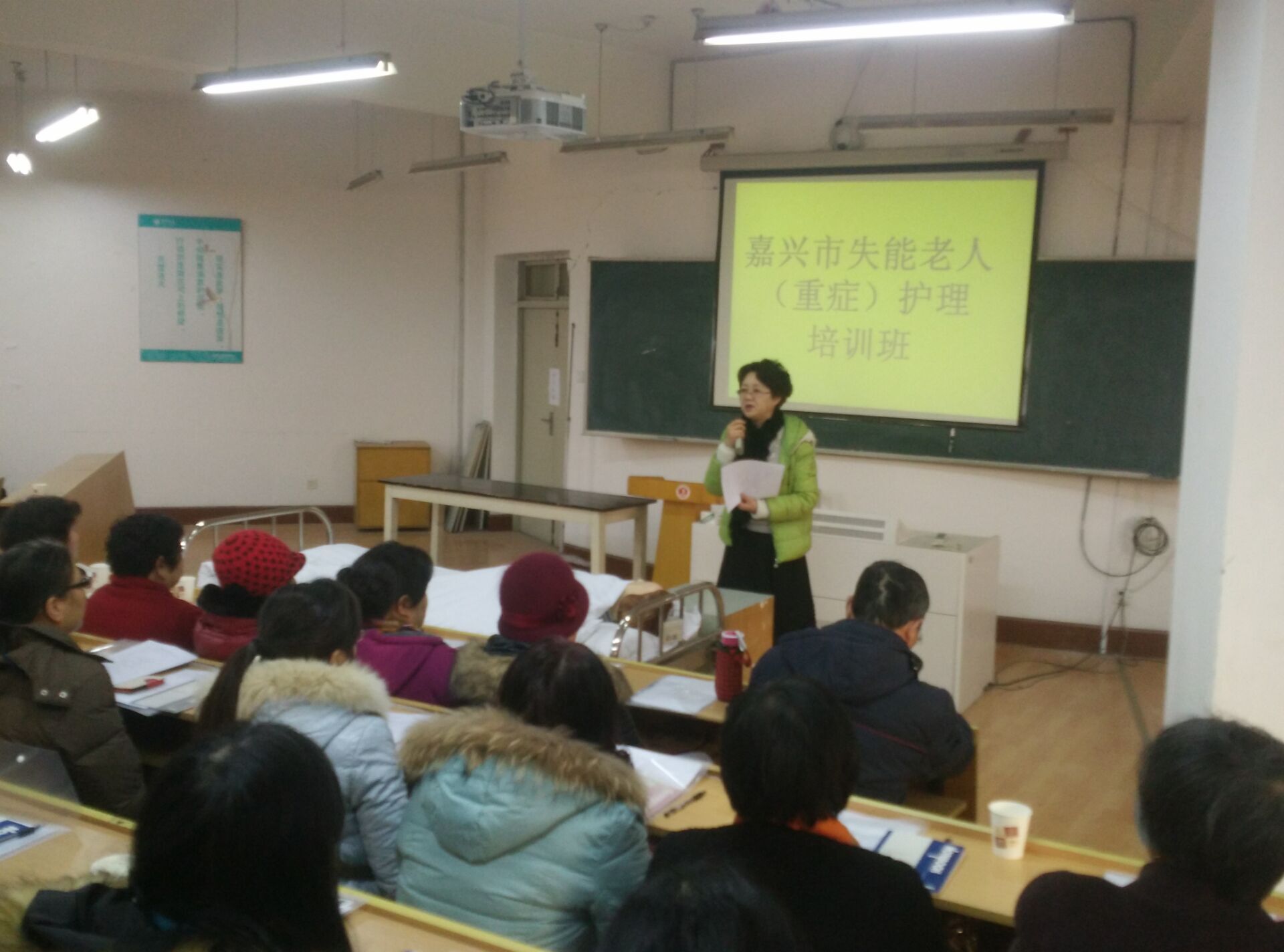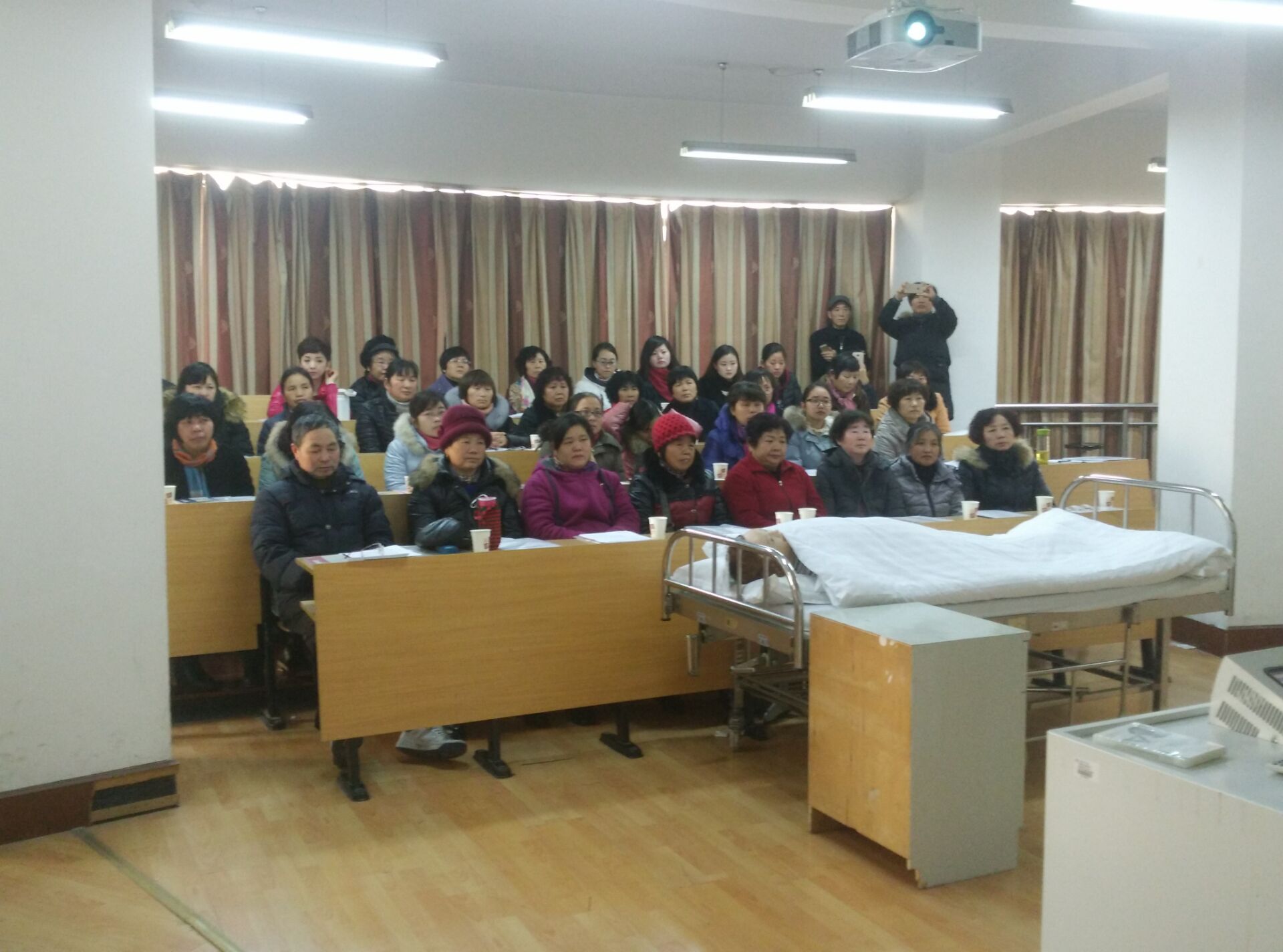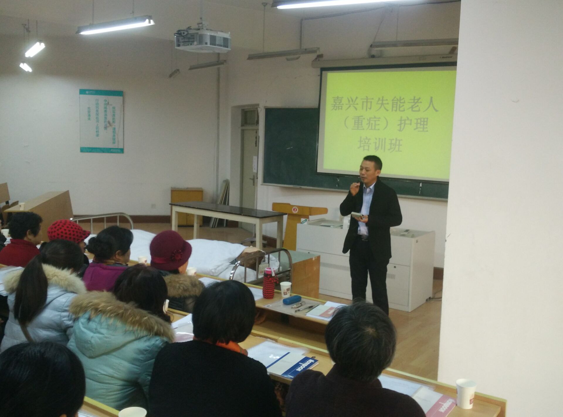 随着人口老龄化的不断加剧,失能老人的家庭越来越多,为更好的服务地方,回报社会,关怀失能老人及其家庭的生活,2016年1月9日,探花av 社会服务部在探花av 实验中心为嘉兴经济技术开发区的社区干部、失能老人家属举办了失能老人家庭护理培班,受到了当地社区和家庭的热烈欢迎,总共有70名学员参加了培训。培训内容主要有口腔护理、床上洗头、床上擦浴、压疮预防护理、大小便失禁的护理、便秘护理、饮食护理、协助翻身法、卧床病人换单法、脑卒中患者良肢位摆放、上下轮椅法。探花av 派出了优秀师资力量,同时提供了实验室给学员进行操作学习,有理论讲解和模拟真人的示教操作演练。学员们学的非常认真。培训结束后,学员们纷纷表示此次培训收获非常大,社会非常需要这方面的培训。