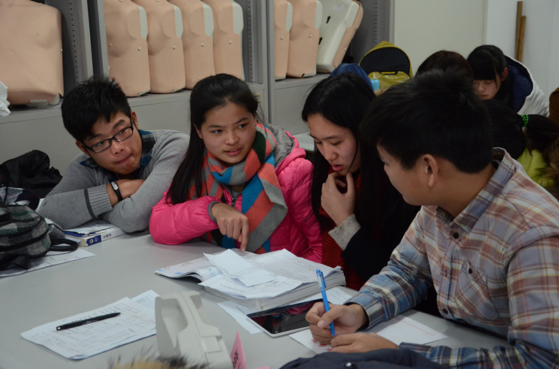 本次大赛共有12支队伍参加,共分为三个环节,第一轮为笔试环节,通过该环节,依据分数高低,晋级八队,淘汰四队,第二个环节为体格检查,主要是检查心脏、测量血压的竞赛,第三个环节为PBL讨论,该环节主要是对病例进行讨论、诊断和答辩。