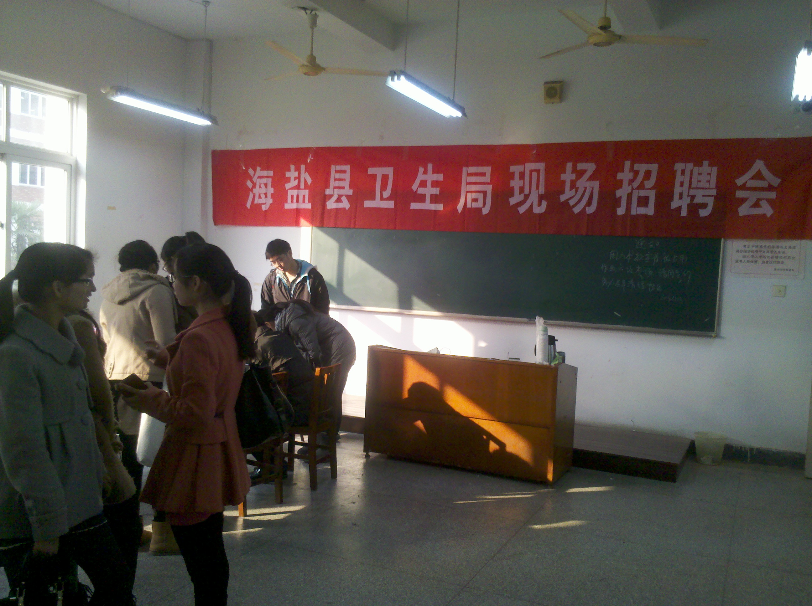 始终把毕业生就业工作摆在重要位置,学院领导对此次招聘会给予了高度重视,积极联系海盐县卫生局和人事局,本次招聘会海盐县招聘优秀紧缺型卫生人才、提供事业编制工作岗位70个。现场共有40余名毕业生报名投递简历,并接受面试考核,结果将随后揭晓。