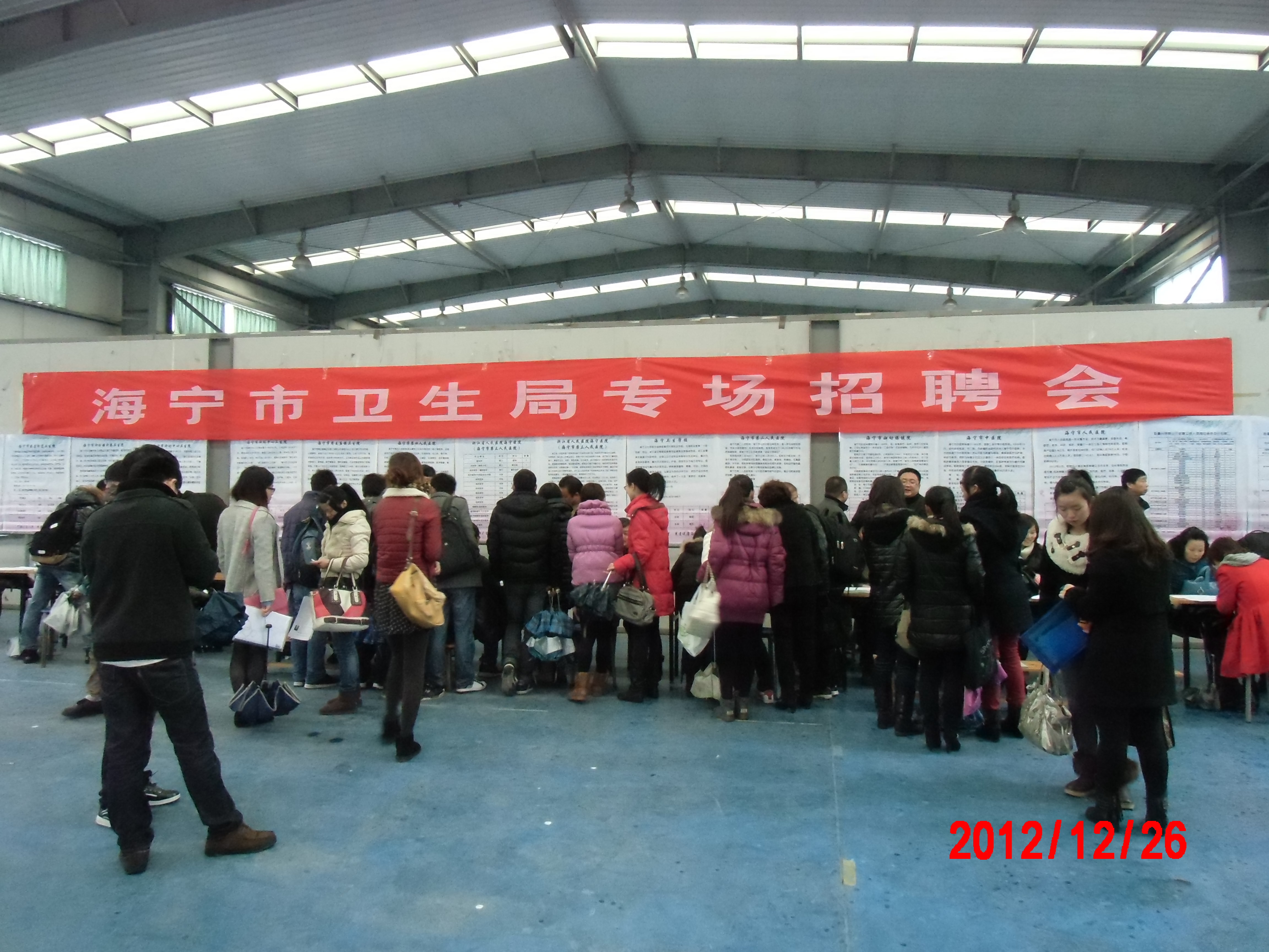 在梁林校区风雨操场成功举办了“2013年海宁、平湖卫生局专场招聘会”。这是我院第6次与海宁市卫生局、人事局合作,首次与平湖市卫生局、人事局合作举办招聘会。海宁卫生局共有人民医院、中医院、周王庙镇卫生院等13家用人单位,提供岗位111个;平湖卫生局共有人民医院、中医院、新埭镇医院等15家用人单位,提供岗位131个。参加本次招聘会人数约100余人。