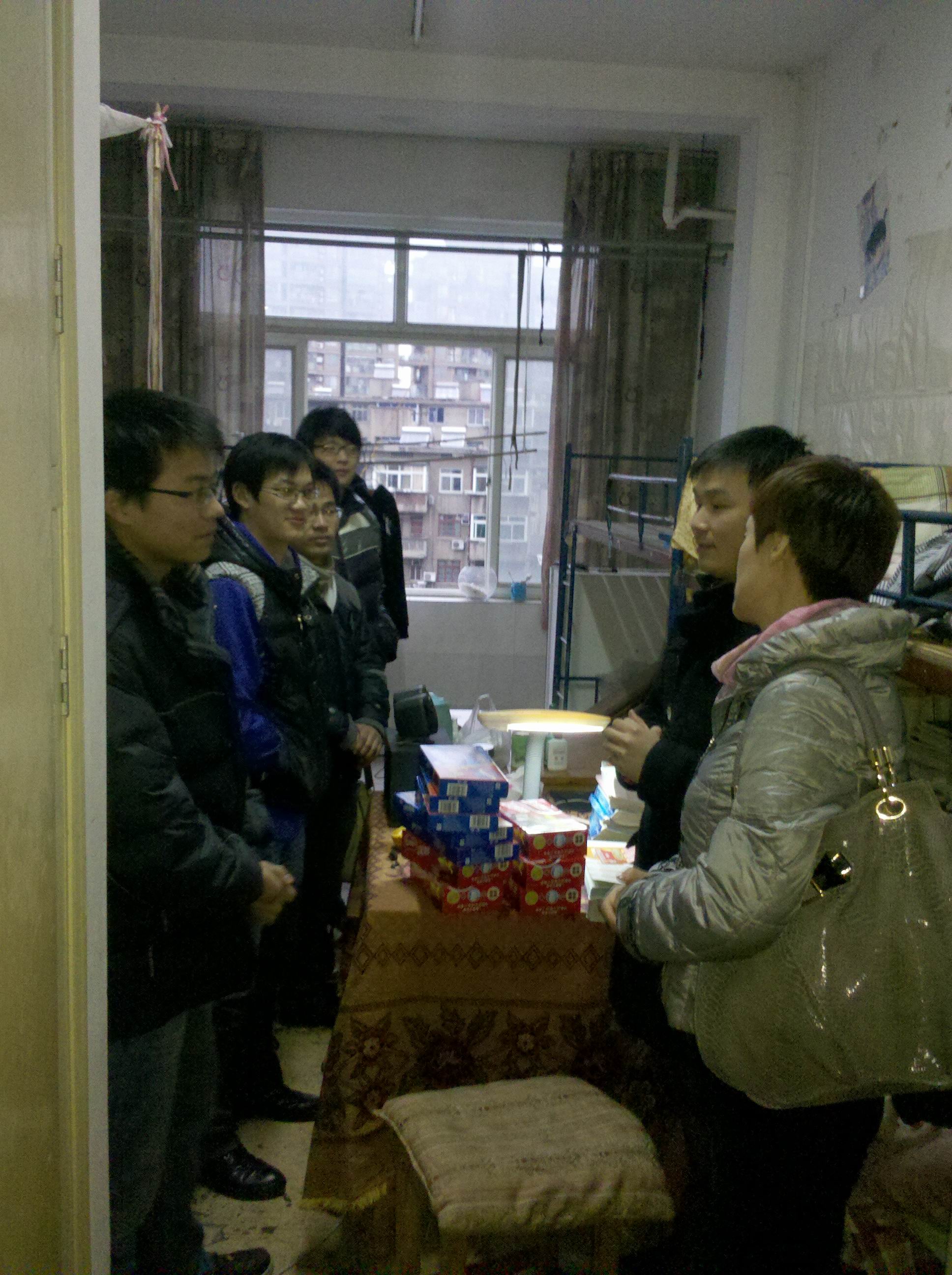 探花av 2012届毕业生中共有149人报考了2012年的研究生入学考试,占毕业生总人数的36.6%,是历年来报考人数之最,目前考研备战已进入白热化阶段,为了在最后阶段给大家鼓劲,12月27日下午4点半,探花av 张杰书记、谢宏副书记、学工办蒋小红主任、彭溶老师带着精心准备的慰问品来到老卫校宿舍看望考研学生。 张杰书记首先代表学院向考研学生表示亲切的慰问,叮嘱他们要保证营养、注意身体、积极备考,并预祝他们在2012年研究生入学考试中取得好成绩。谢宏副书记也希望同学们在冲刺最后阶段,把身心调整到最佳状态,取得考研的最终胜利。 同学们纷纷表示一定不辜负领导和老师的殷切希望,争取在2012年研究生入学考试中取得优异成绩!
