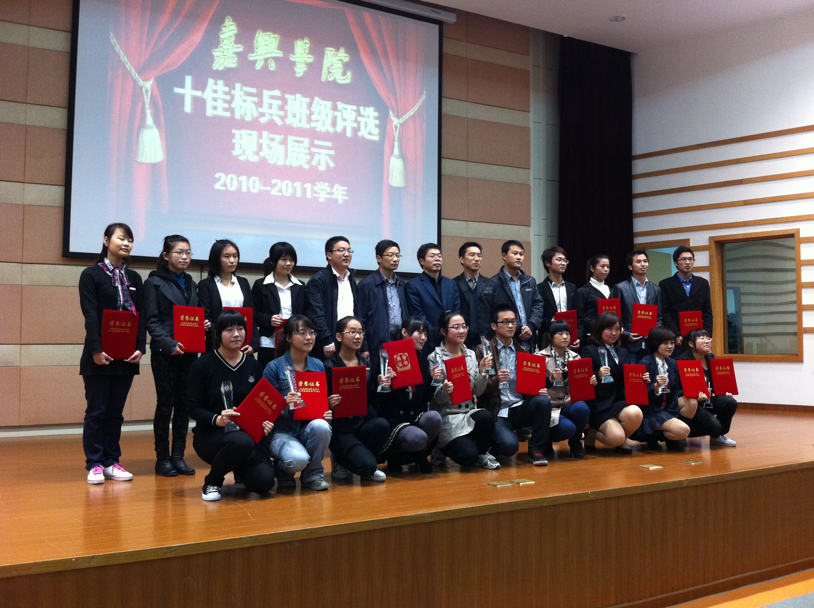 嘉兴学院2010-2011学年“十佳标兵班级”评选活动于上周六(11月12日)下午在梁林校区TCL报告厅落下帷幕。探花av 选送的医本081和医本082两个班级在经过了材料申报和现场展示两个环节的激烈角逐后,最终双双获得“十佳标兵班级”的荣誉称号,成绩喜人,为院争光。