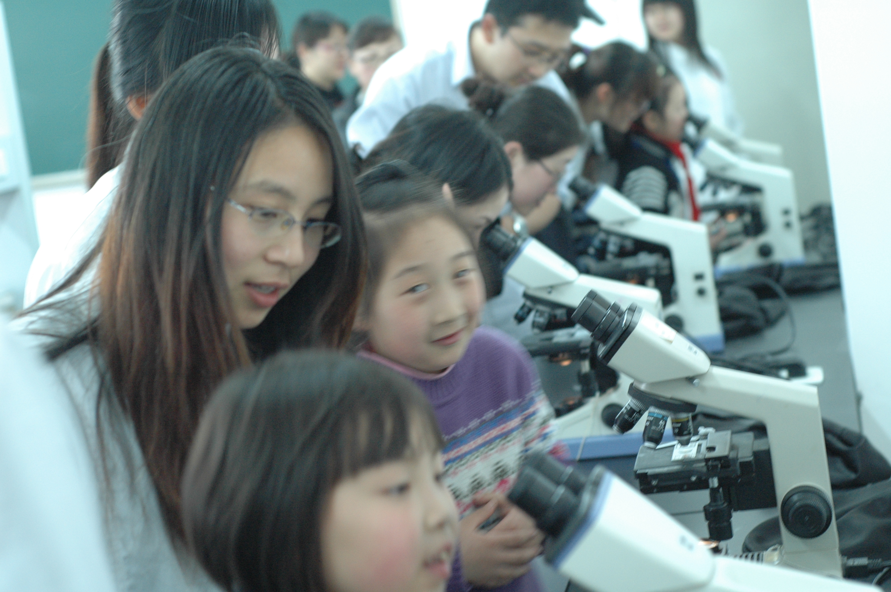 活动中,在护理学生支部师生党员的带领下,小朋友们参观了动物房和医学实验中心。在人体解剖标本实验室,师生党员向小朋友们介绍人体解剖的基本知识;在微生物实验室,徐水凌教授指导小朋友在显微镜下寻找血吸虫、蜱虫、蛔虫,并让小朋友走进细胞房观察肿瘤细胞;在手术实验室里,学生党员教会小朋友们七步洗手法。小朋友们在参观中过足了瘾,了解了简单的医学知识,学习了讲卫生的好方法。