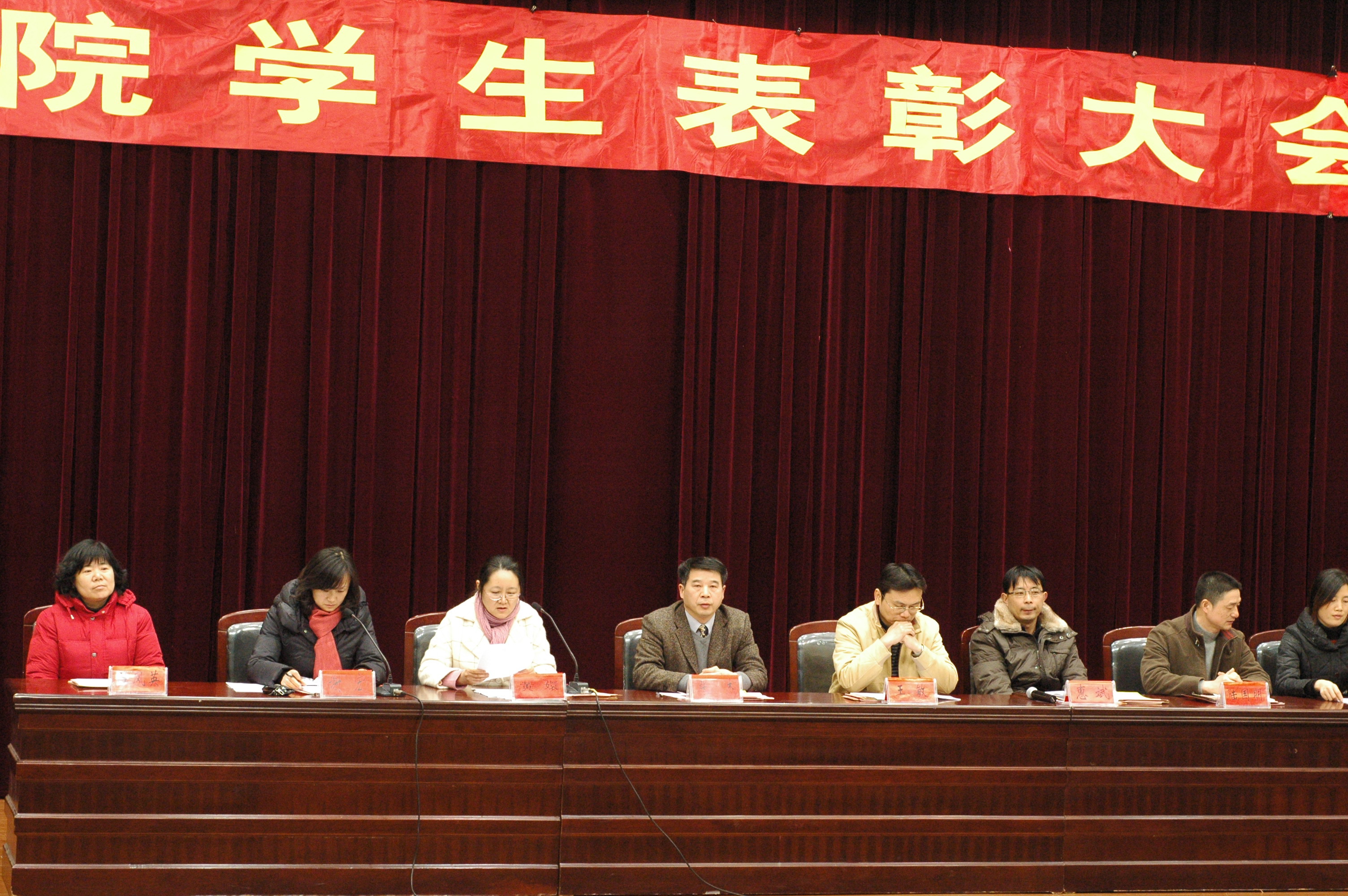 党政班子、三办主任、10级全体学生以及受表彰学生出席大会。大会由党总支副书记谢宏主持。大会表彰在2010年中取得优异成绩的各类优秀学生、先进集体和英语四、六级考试优胜班级,并对即将到来的期末考试进行动员。