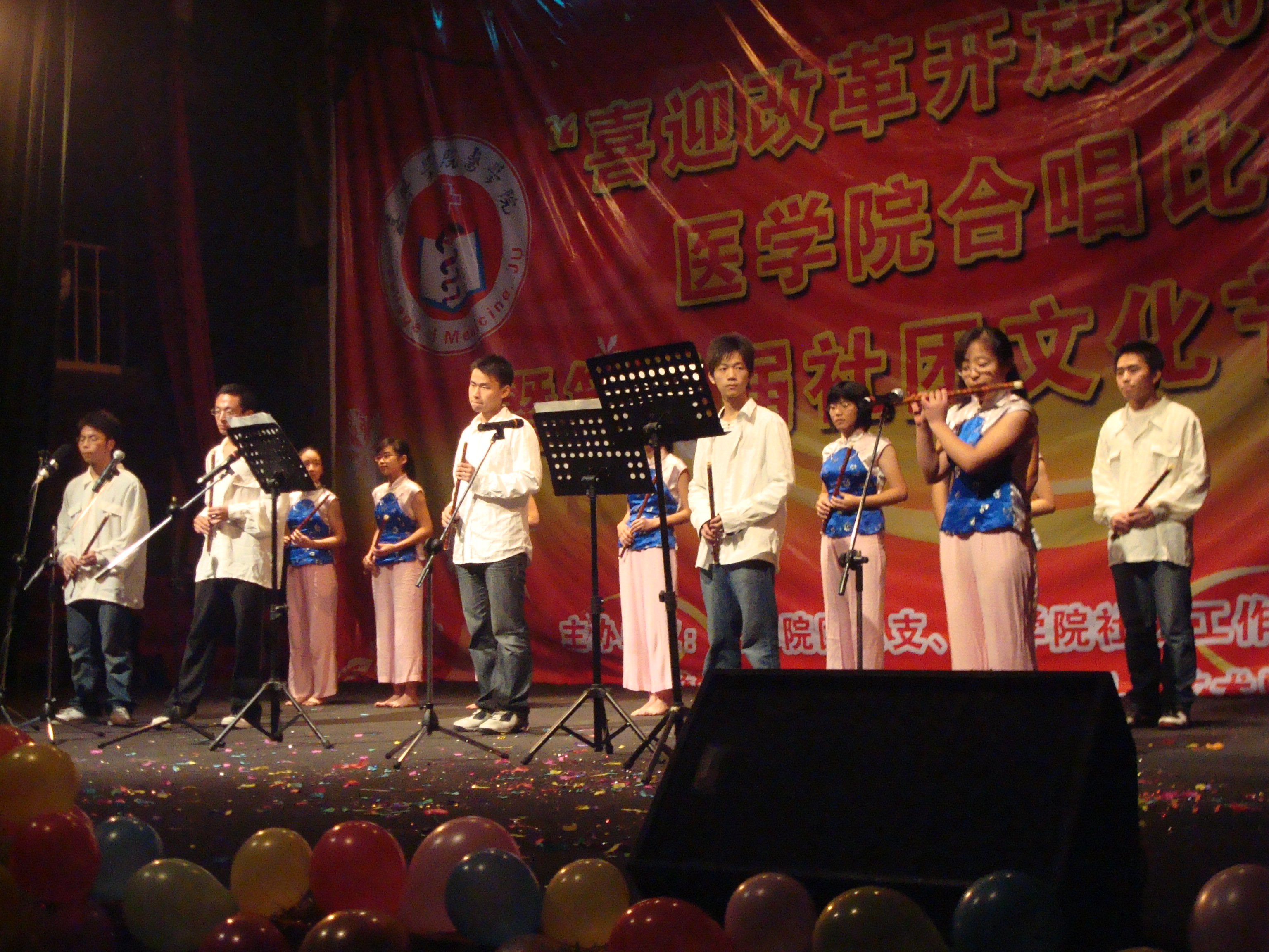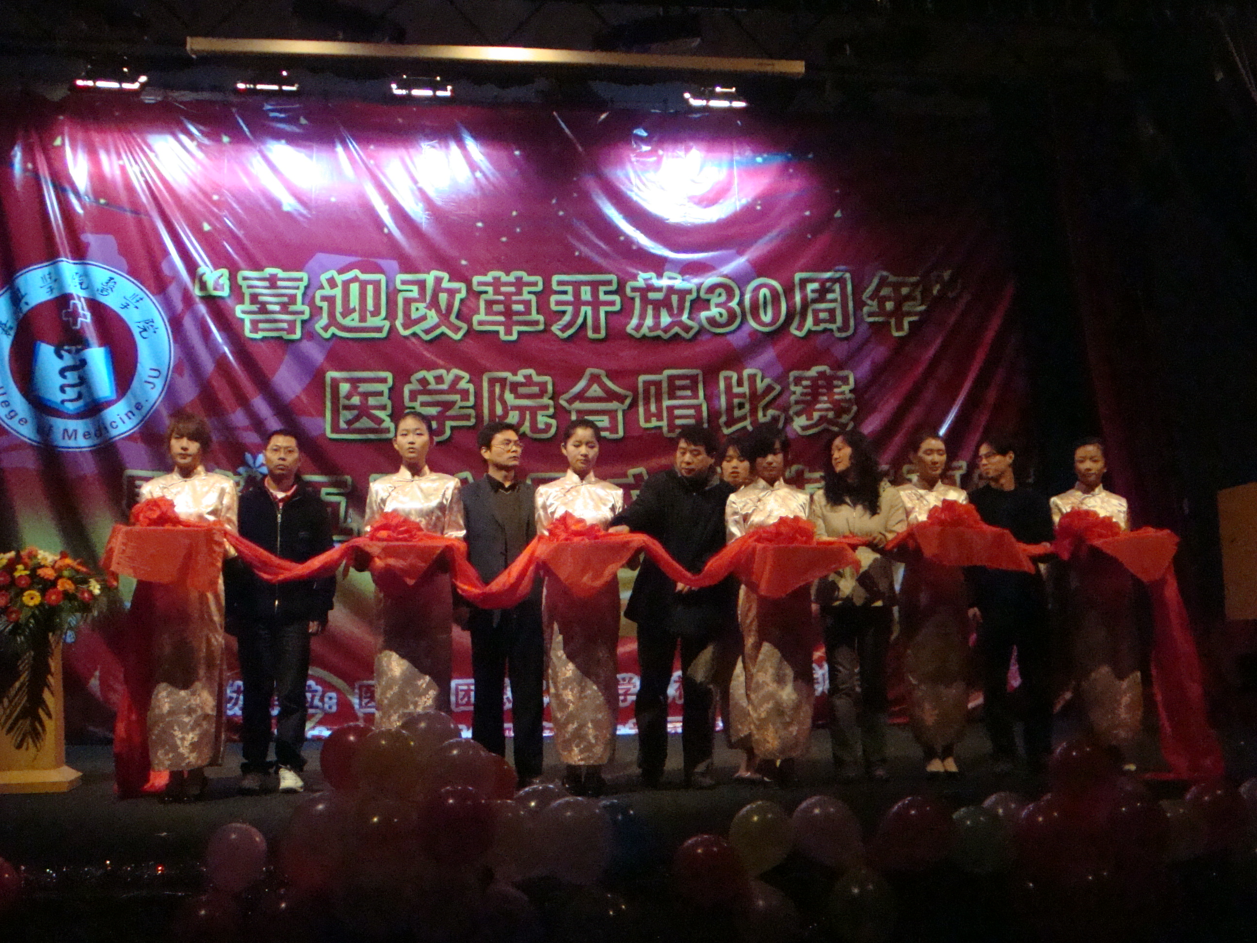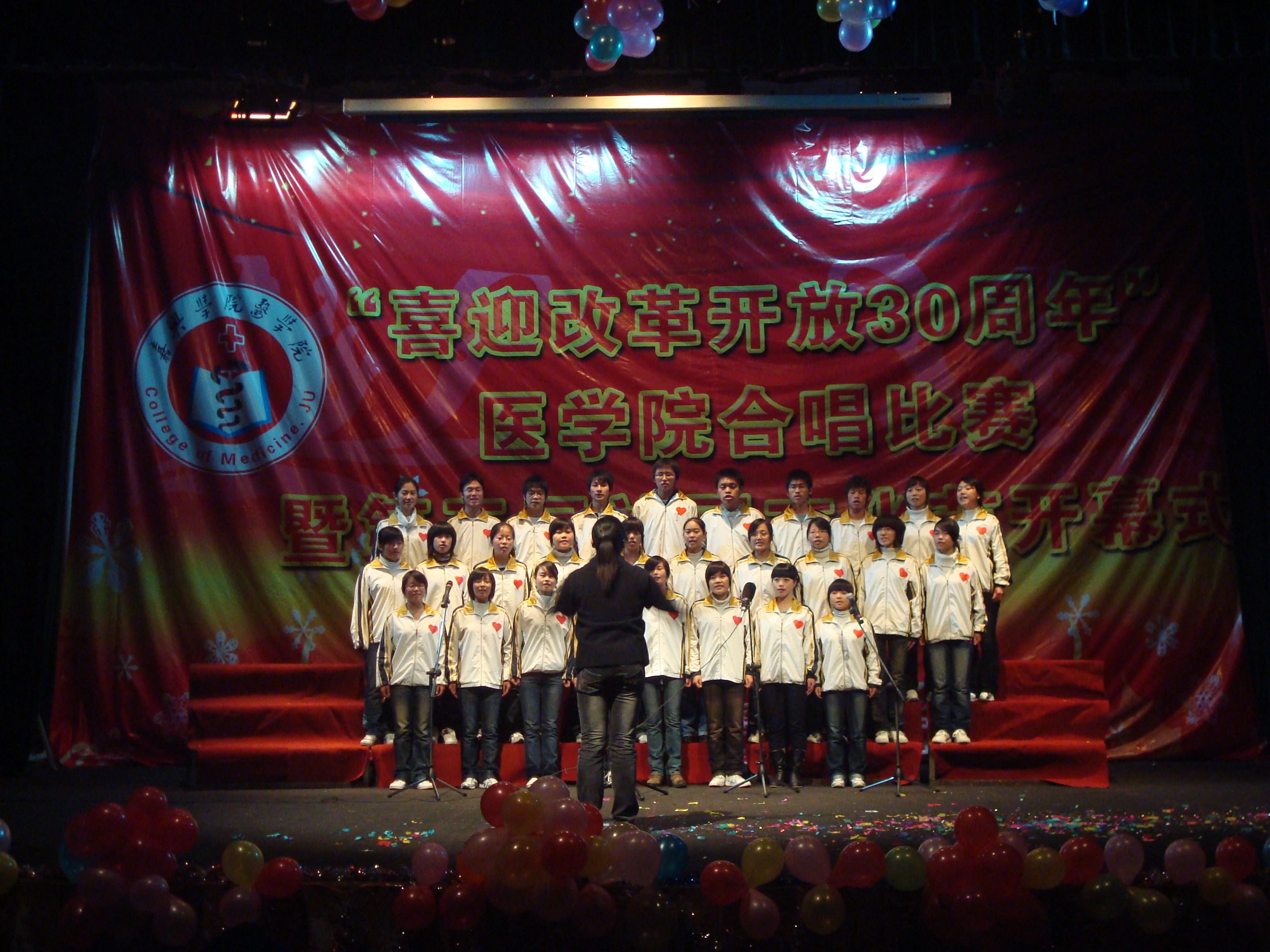 在越秀校区大学生活动中心隆重举行了“喜迎改革开放30周年合唱比赛暨第五届社团文化月”开幕式。