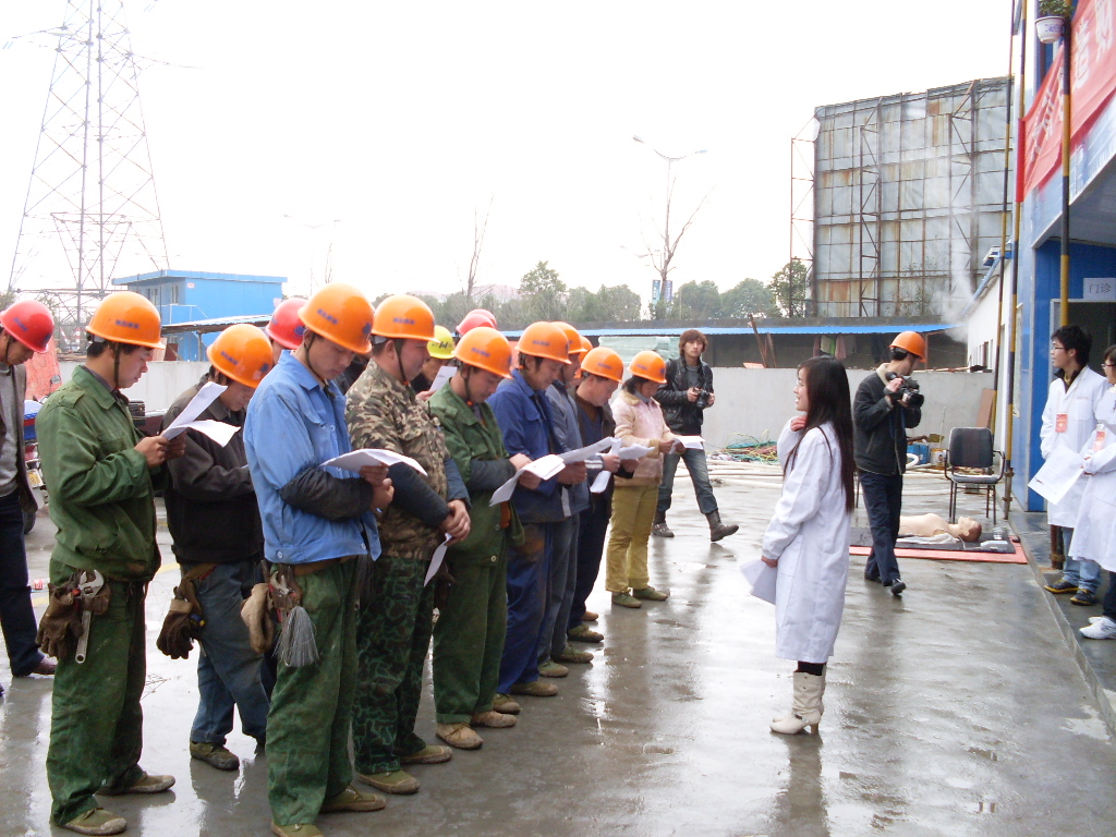 我院青年志愿者主要针对基建民工的实际情况,开展了基本医疗检查,如做心电图,测量血压与脉搏,测量视力、色觉等;同时通过现场人体模型为他们演示心肺复苏、人工呼吸等急救措施;另外就现场组织了相关医疗知识的学习,发放工地常见紧急情况的急救资料(如高压触电、高空坠落等急救护理)。此次医疗活动服务人数达70余人,共发放宣传资料近200份。