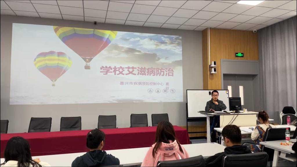 启动仪式后,嘉兴市疾控中心葛锐给同学们带来了一场通俗易懂且能够学以致用的防艾科普讲座。讲座结合嘉兴市艾滋病的患病现状及青年学生哨点监测数据特征,分析解读了当前艾滋病的患病形势及高校学生的患病病因、人群特点、传播途径、诊断治疗和预防措施,从理论知识到实践运用,既有理论高度又贴近学生生活,获得了同学们的阵阵掌声。讲座之后,同学踊跃提问,葛老师给予了专业幽默的解答,气氛活跃,收获满满。
