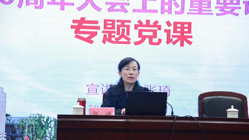 张琦副校长以“实现中华民族伟大复兴”的主题引入,从“四个伟大成就”“四个庄严宣告”“伟大建党精神”“九个必须”四个重点出发,详细阐释习近平总书记“七一”重要讲话精神。引导大家进一步深化对中国共产党百年来走过的光辉历程、建立的历史功绩、形成的光荣传统和革命精神、积累的宝贵经验和实践启示等一系列重大问题的认识。讲座内容政治站位高,内容丰富,兼具理论高度和全局视野,让聆听的全体教职工深刻领会了党史蕴含的思想伟力。