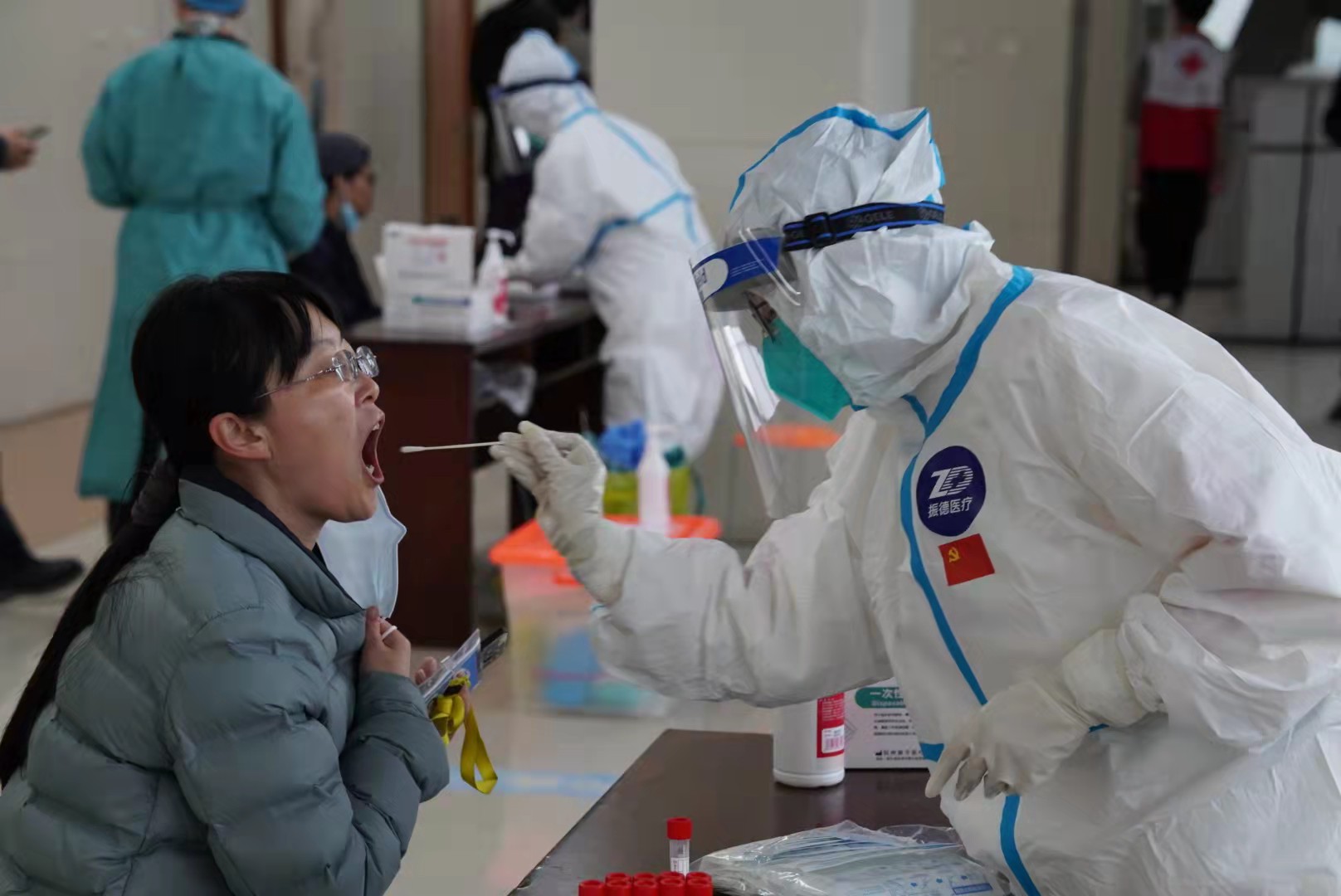 志愿者们投入迅速,各司其职,通力合作,检测现场秩序井然。此刻,他们是老师,更是一名共产党员,是志愿者,也是战士,是守护者。同学们面对疫情,果敢应征,在实践中完成了一堂生动的思政课和专业课,充分展示了嘉院医学学子的风采,用实际行动捍卫着医学生誓言,在抗疫大战中践行着初心使命。
