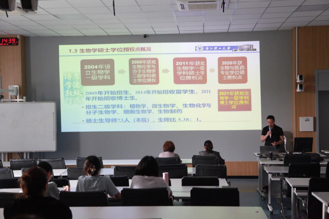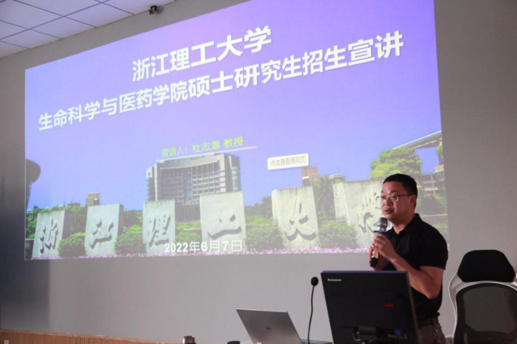 2022年6月7日下午,浙江理工大学生命科学与医药学院的杜志游教授来到医学院,为我院学子做研究生招生宣讲。探花av 副院长潘巍巍、药学系主任黄越燕等教师参加宣讲活动。杜志游教授介绍了浙江理工大学及生命科学与医药学院的概况、学院人才队伍、学科布局、专业方向以及硕士招生相关信息。此外,杜教授还介绍了生命科学相关知识,让学生了解到国内外当前研究热点及方向,开阔了学生视野,体验了多元文化、锻炼了独立思考能力,并与学生进行提问式互动,加深对广大同学对知识的巩固理解。