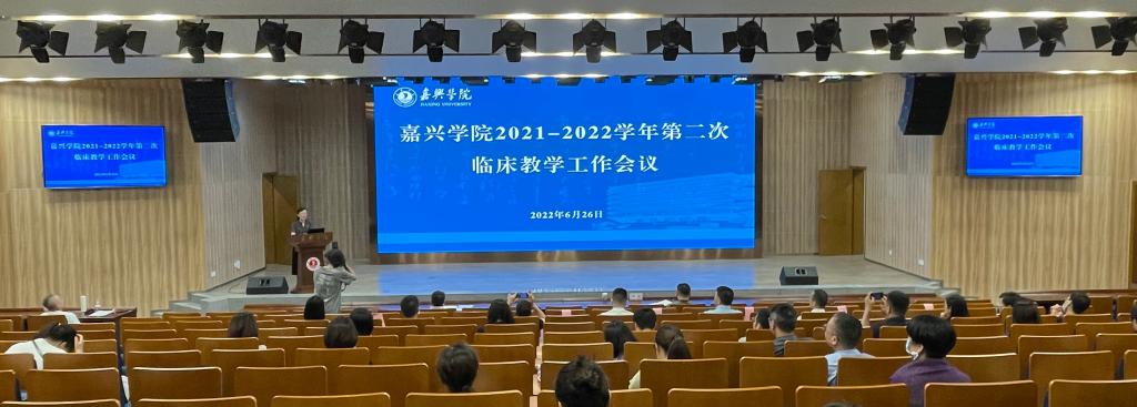 6月26日下午,嘉兴学院2021-2022学年第二次临床教学工作会议在图书馆学术报告厅召开。党委委员、副校长(主持日常工作)胡俊云,党委委员、副校长张琦,市卫健委副主任李金大、市教育局副局长闻泉新出席会议,会议由探花av