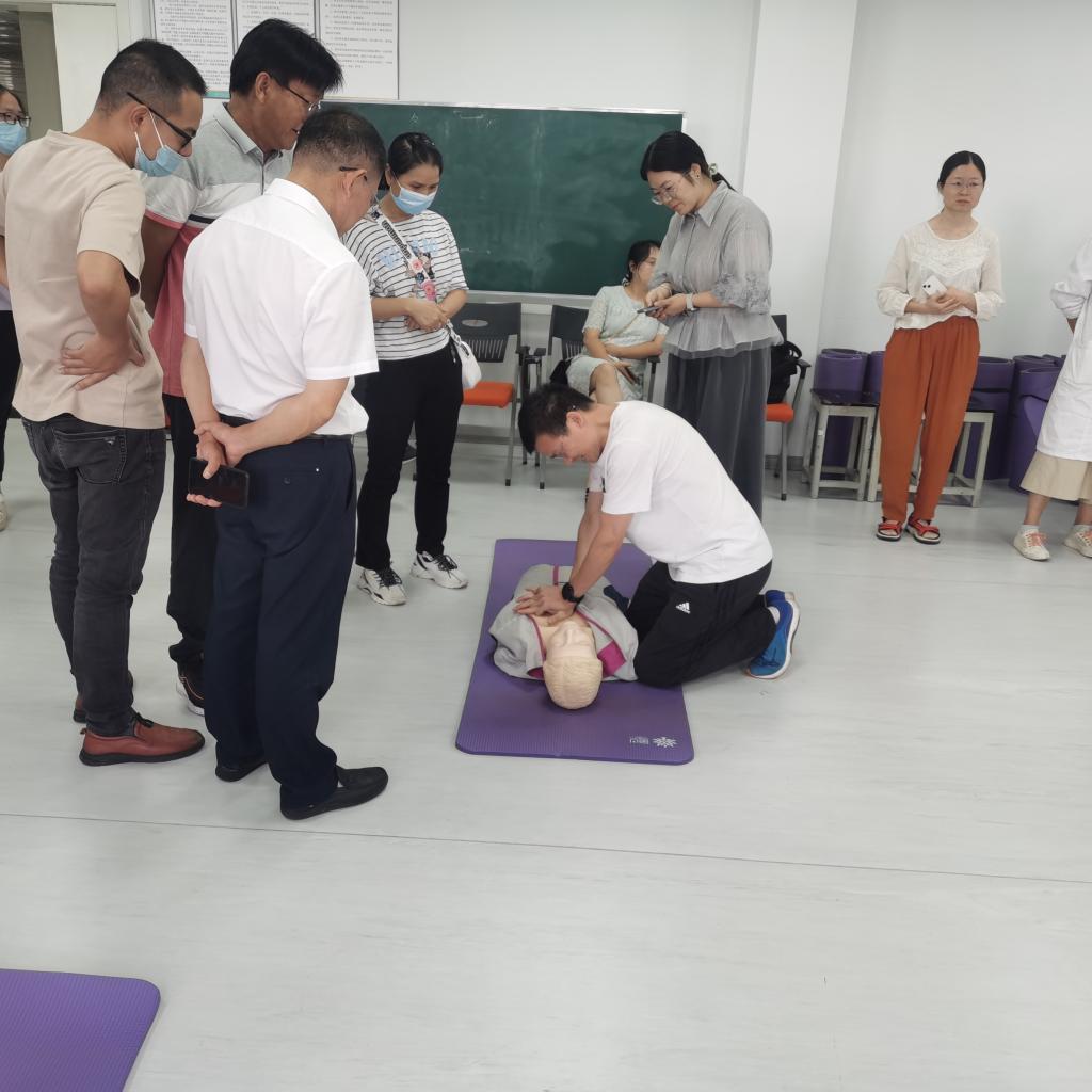 实验中心团队面向全校实验中心安全员开展急救知识培训活动,宣讲心肺复苏急救训练项目。