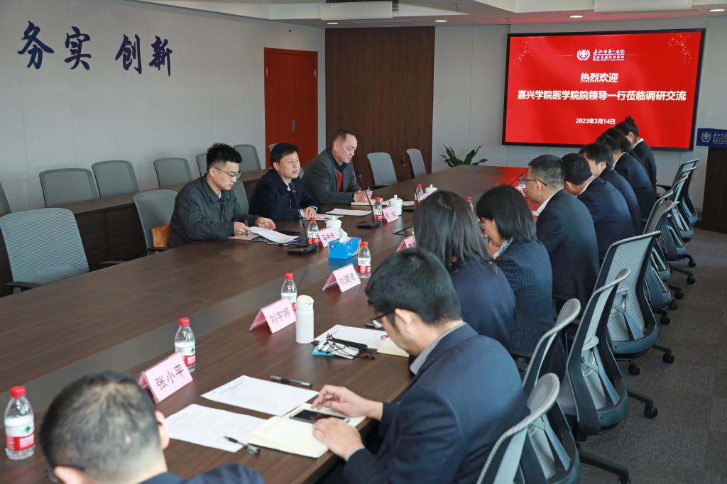 3月14日上午,学院院长何治、党委书记陈云飞一行到嘉兴学院附属第一、附属第二医院考察调研。附属第一医院、第二医院党政班子成员,科教科负责人参加调研座谈会。