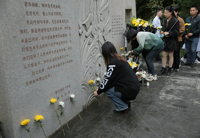师生代表将手中的黄白菊花一一放在无语良师碑前,深情注视着每一位无语良师的名字,以敬畏之心瞻仰无语良师纪念碑。寄语当下,逐梦未来。“大爱无疆”“永远怀念您为我们做的一切”......一株株柏树上悬挂着探花av
