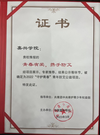 会上表彰了共青团中央2022“守护青春”防艾公益项目,嘉兴学院探花av