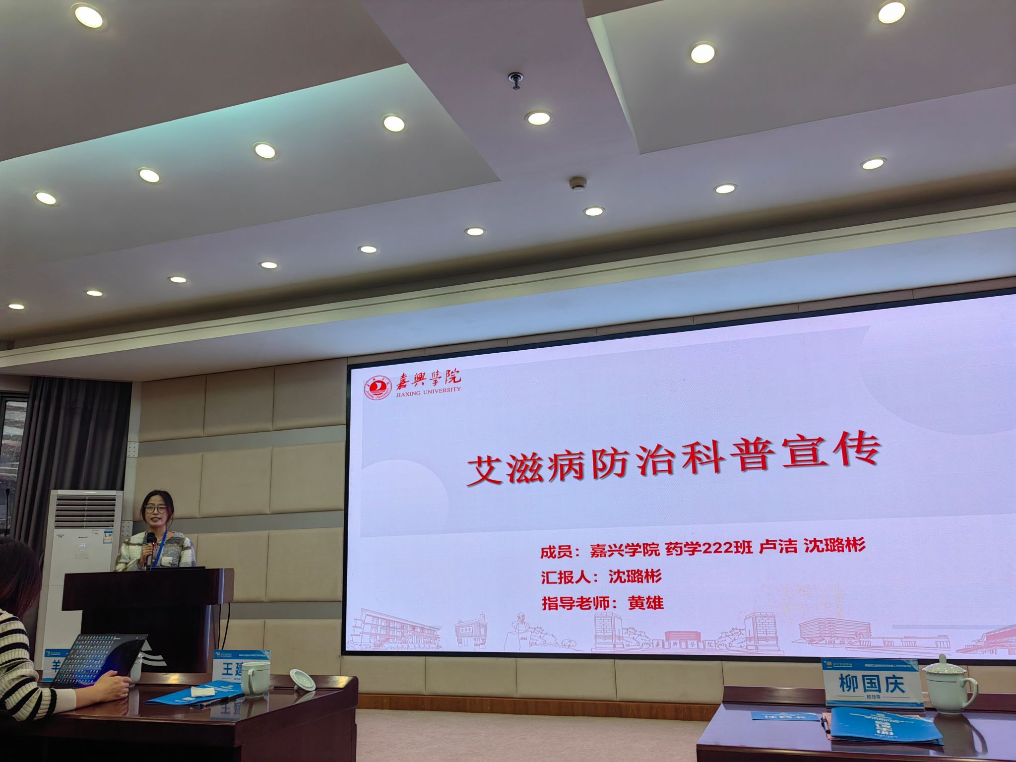 我院药学系黄雄老师,药学222班学生沈璐彬、卢洁同学参加了会议,沈璐彬同学在大会作了“艾滋病防治科普宣传”的PPT汇报交流。探花av 药学系作为嘉兴市巾帼文明岗和浙江省高校党建样板支部,通过参加此次活动,忠实履行着“传播药学知识,服务大众健康”的责任。