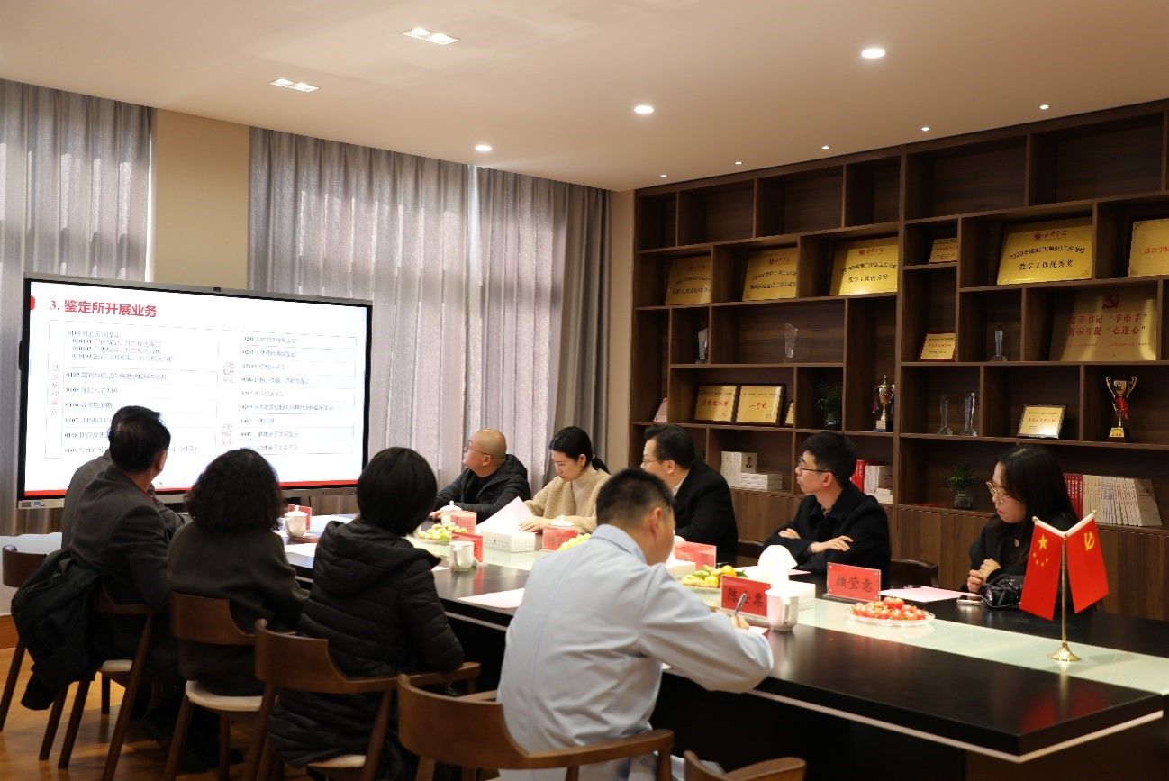 司法鉴定所机构负责人、党支部书记徐广涛副教授从机构现阶段的基本情况、运行至今的业务情况以及接下来的工作重心和发展规划等方面做了详细介绍。