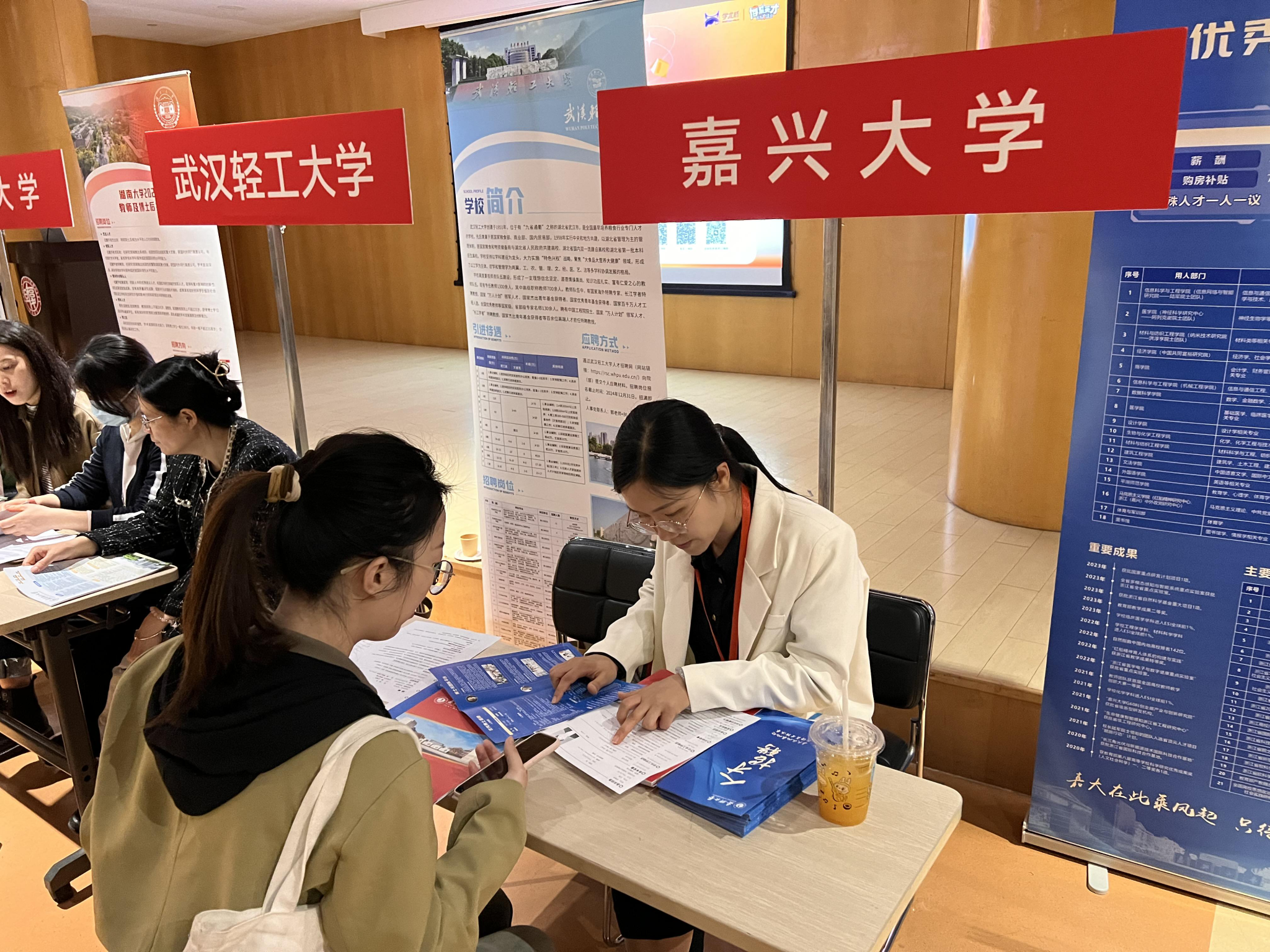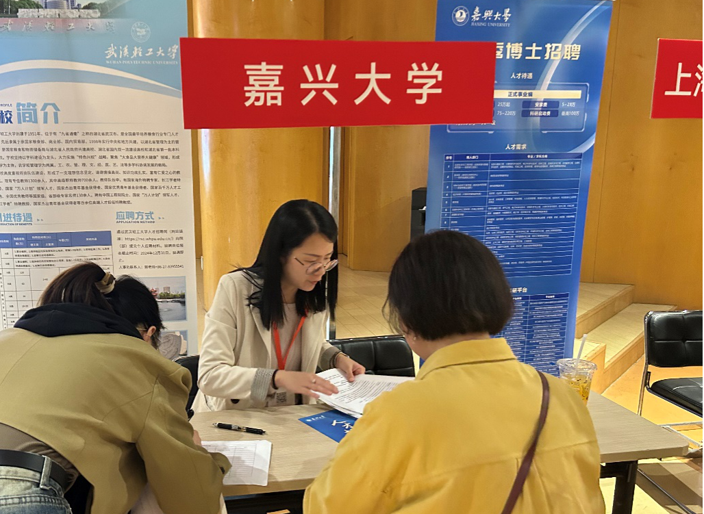 本次洽谈会在复旦大学邯郸校区光华楼学生广场举办。现场吸引了众多上海地区及海外留学归国的优秀毕业生前来交流,两位老师热情接待了五十余名求职者,详细地向他们介绍了我校岗位需求、人才层次设定和引进待遇等。众多优秀毕业生纷纷表示,探花av 是一所具有发展潜力的高校,为优秀人才提供了很好的平台和条件,他们将在择业时更多地关注我校,寻求更好的发展空间。