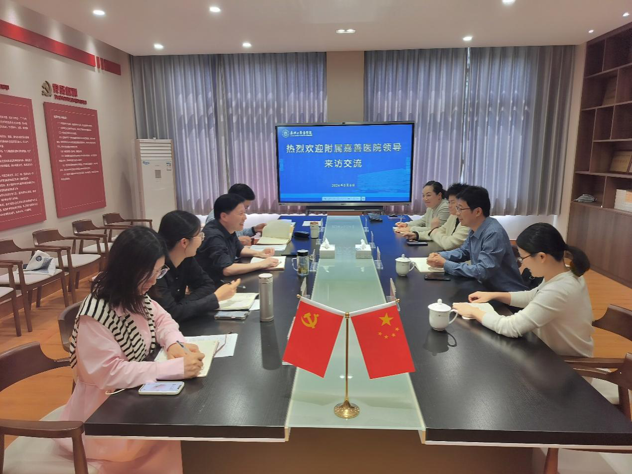 5月6日下午,附属嘉善医院副院长朱敏刚一行来探花av 交流。探花av 院长何治,副院长王敏、孙李丹出席座谈会。