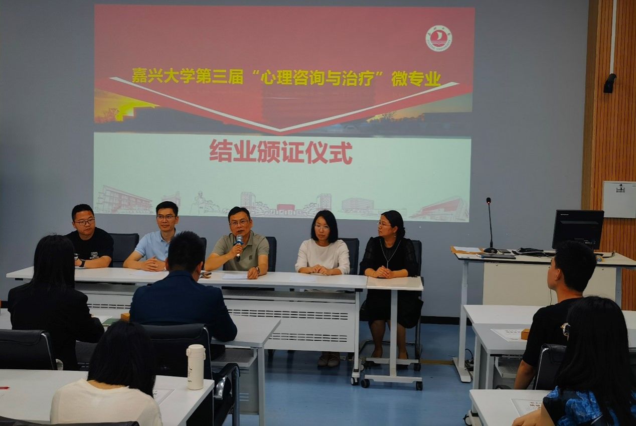 第三届“心理咨询与治疗”微专业结业仪式在仁心楼323智慧教室举行。仪式由教学团队负责人王凤华教授主持,微专业教师团队石统昆、王筝、童林泉等老师及第三届微专业结业学生参加,探花av