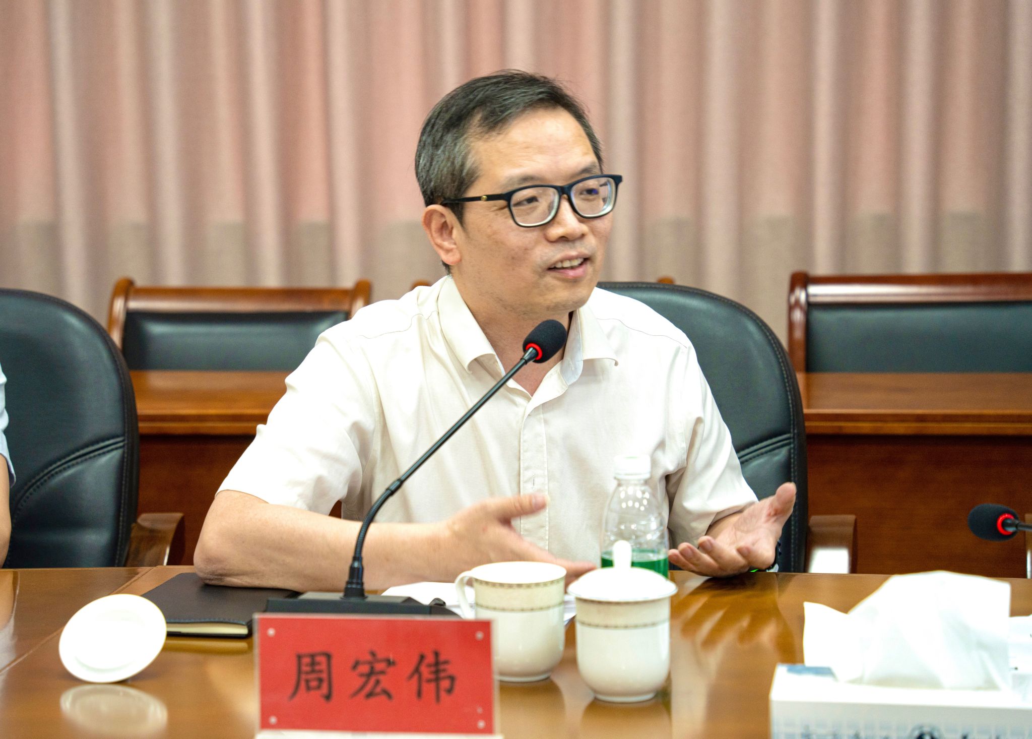 座谈会上,何治院长汇报了探花av