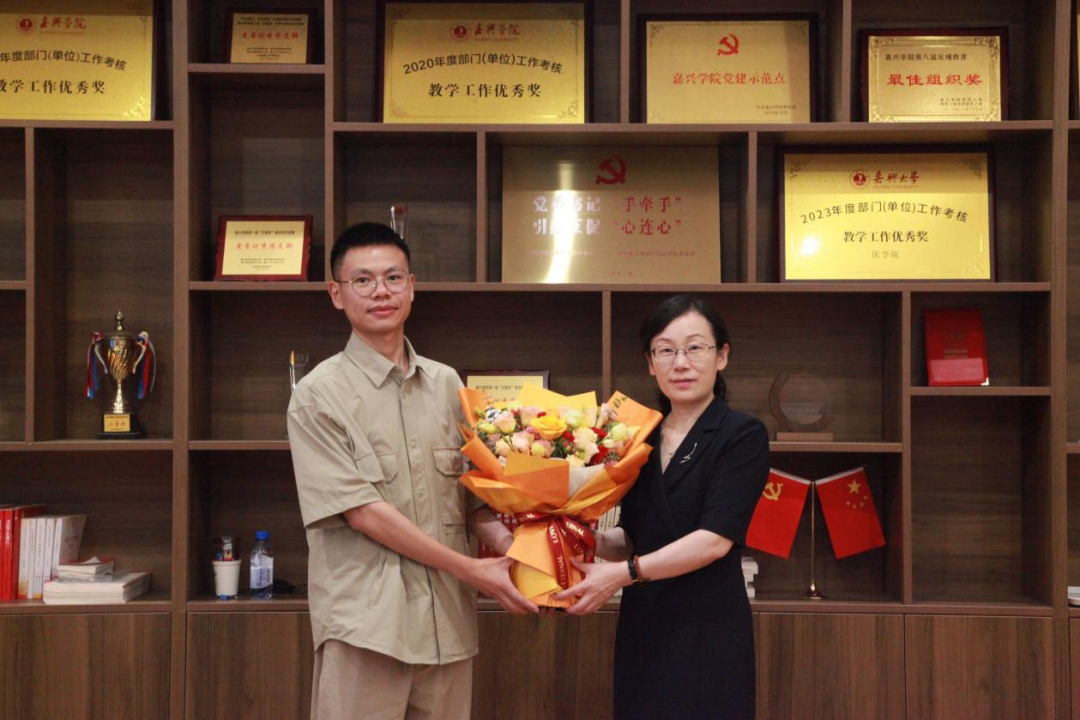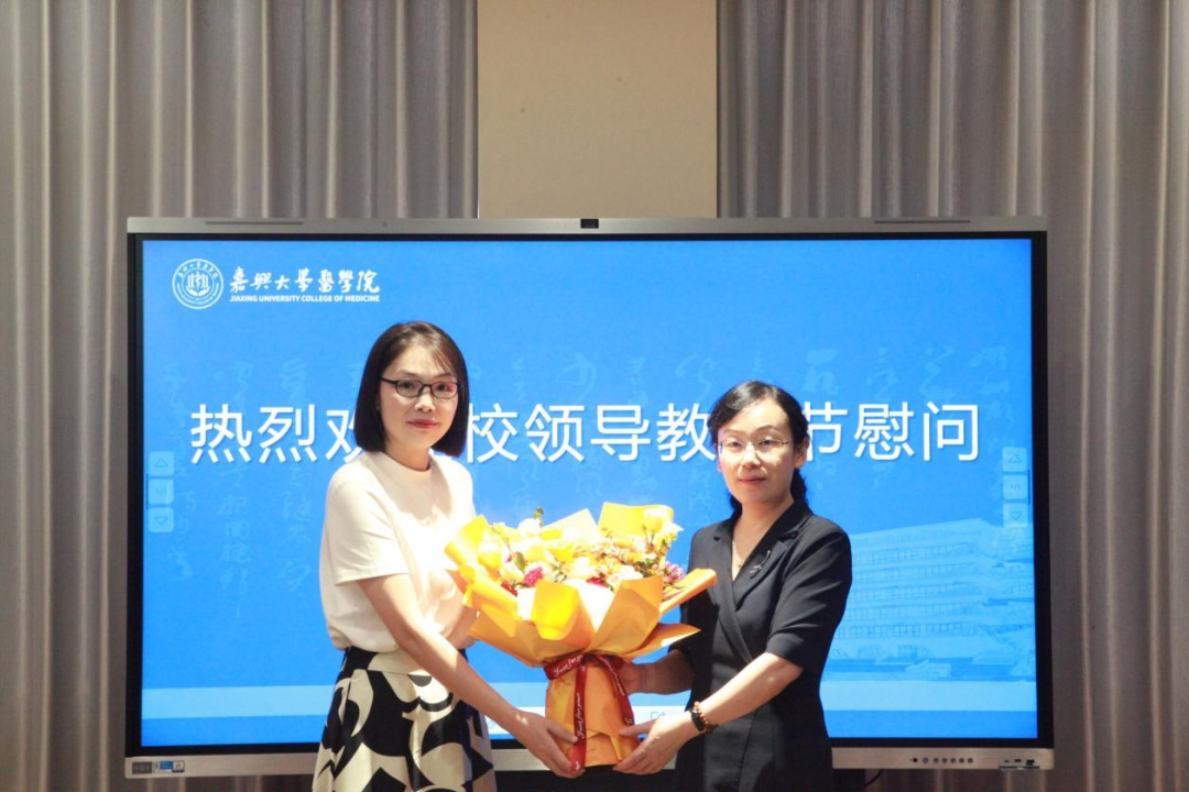 张琦副校长向教师代表朱佳、高金来致以节日的祝福和诚挚的问候,并与教师代表们亲切交谈,了解他们近期生活和教学科研情况,对其成绩和贡献表示肯定和感谢,并鼓励两位教师继续做好教学科研工作,为学院、学校高质量发展做积极贡献。