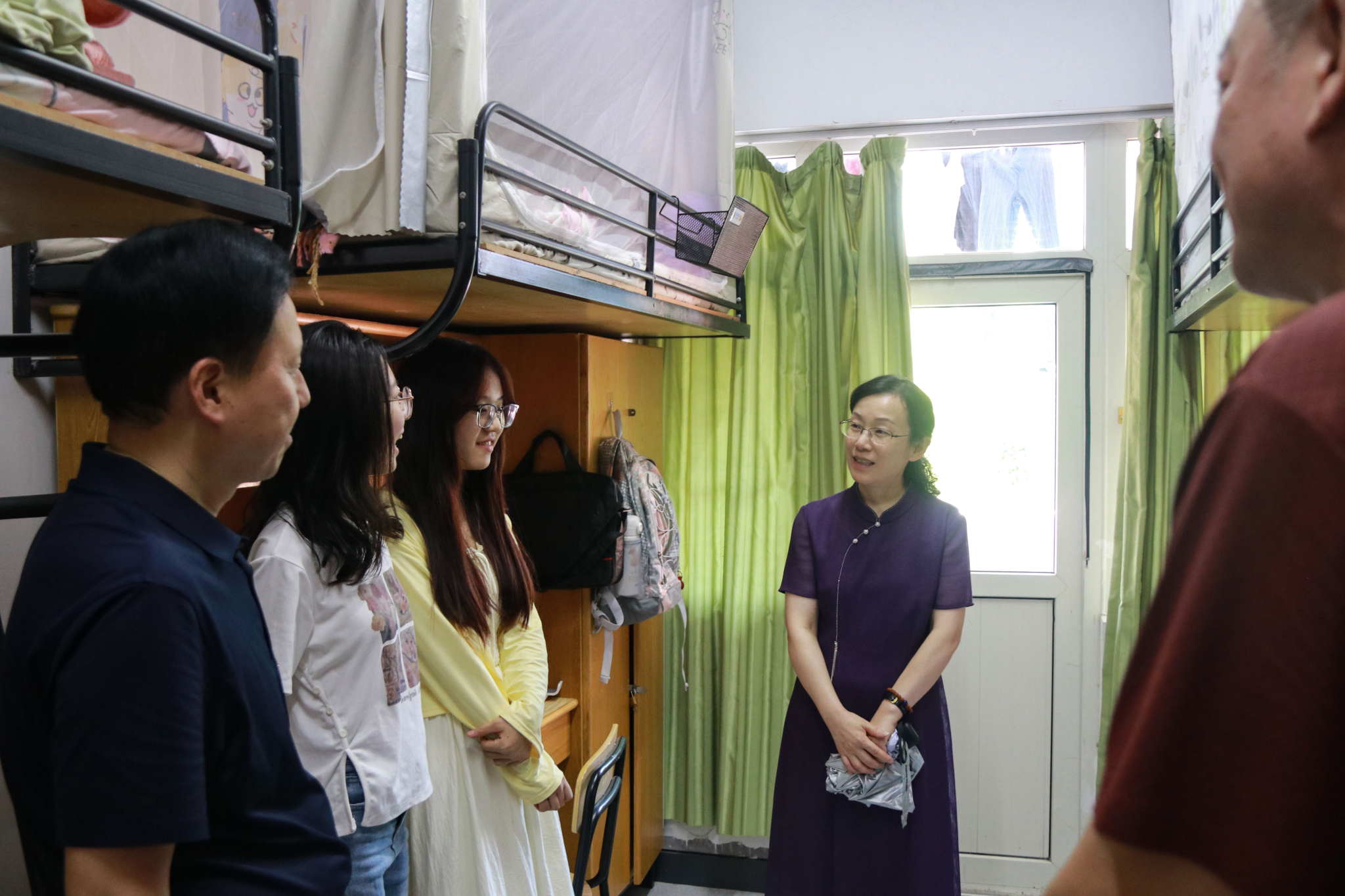 走访过程中,领导们耐心地询问每位新生的籍贯、生活习惯等方面的问题,了解他们对大学环境、专业选择、未来发展等方面的想法。张琦副校长叮嘱同学们在生活上要团结友爱,互帮互助,在学习上要打好基础、刻苦努力,不管是通识课还是专业课都要认真对待,争取德智体美劳全面发展,成为一名可堪大用、能担重任的医者。