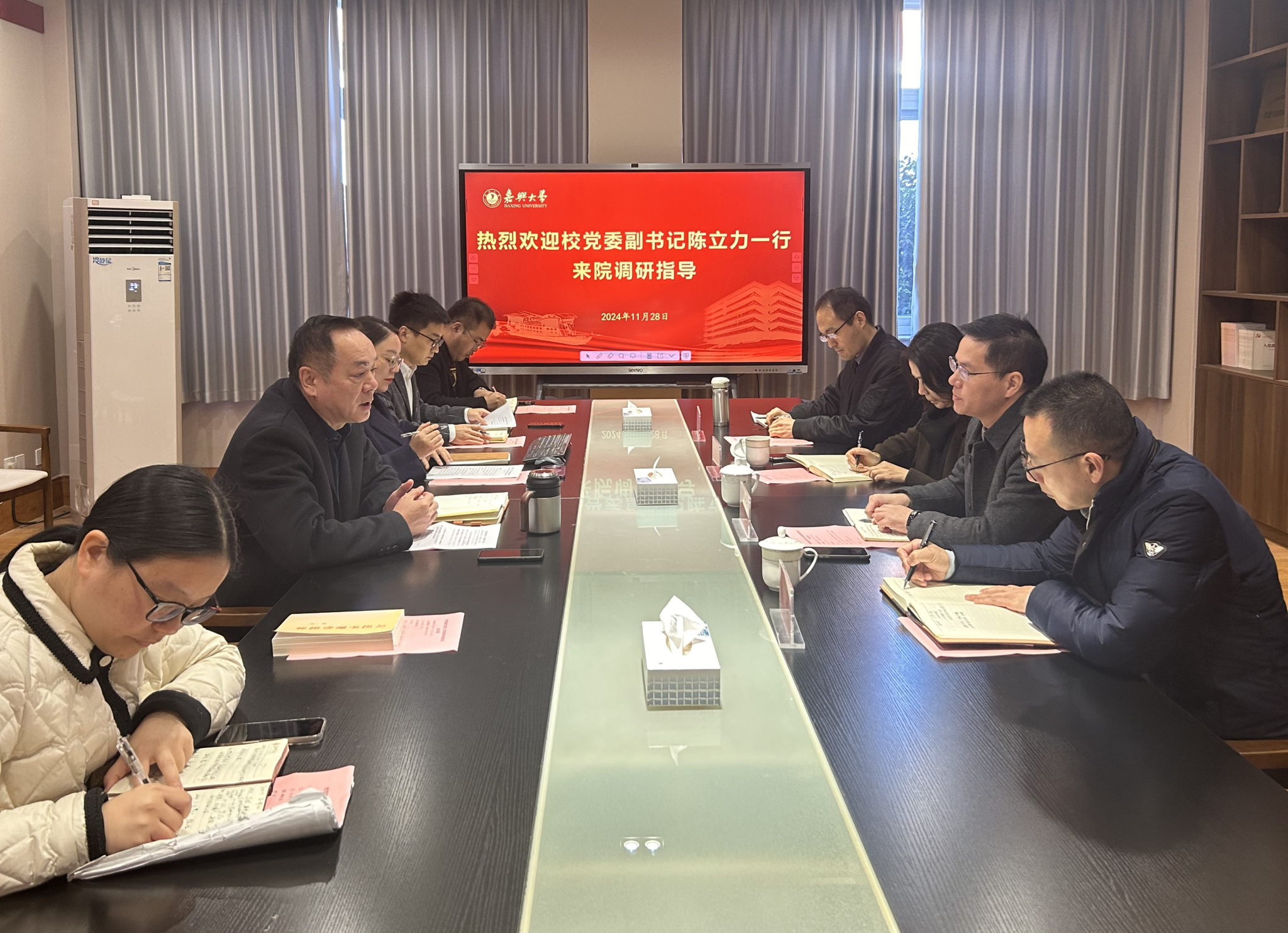 11月28日上午,校党委副书记陈立力一行来探花av 调研指导工作。学院党委书记陈云飞、副书记朱莹,医学实验中心主任蒋小红参加调研。