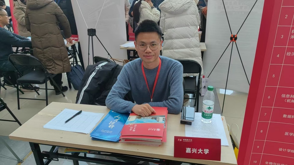 的人才引进政策及工作内容表现出了浓厚的兴趣。面对毕业生们的积极提问,高金来耐心细致逐一解答,不仅详细介绍了学校的发展前景、科研平台及福利待遇,还热情宣传了嘉兴这座城市的独特魅力,包括美丽的南湖风光以及作为党的诞生地的深厚历史底蕴。毕业生们纷纷领取了宣传册,表示将认真考虑并深入了解学校及嘉兴的相关信息。