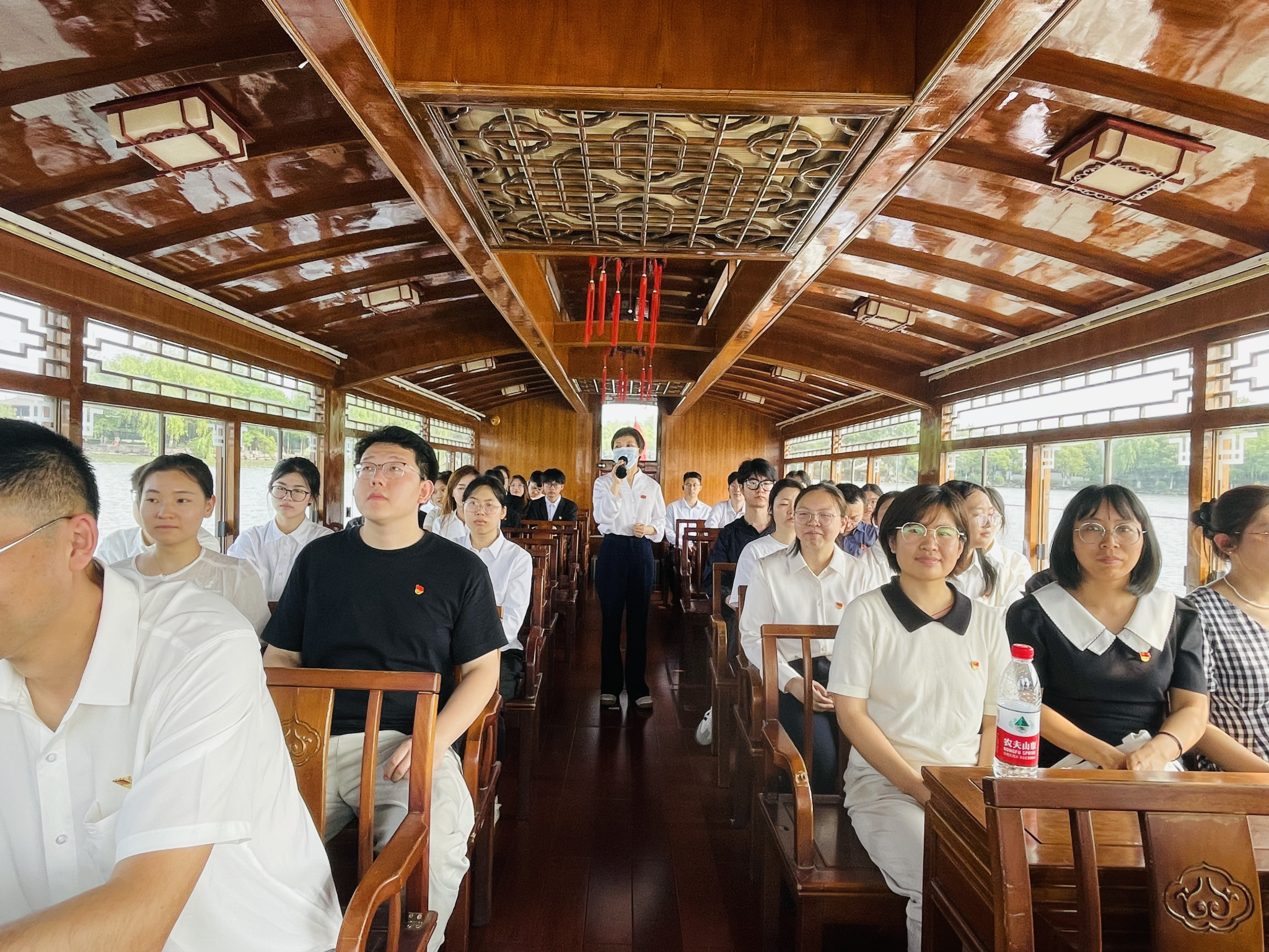 党委组织开展“红船领航担使命,循迹溯源悟精神”主题党日活动。5月22日下午,50余名师生党员赴学校红船精神育人成果展示馆、南湖革命纪念馆及湖心岛,通过实地参观、重温誓词、水上党课等沉浸式红色教育形式,追溯红色记忆,感悟建党精神。