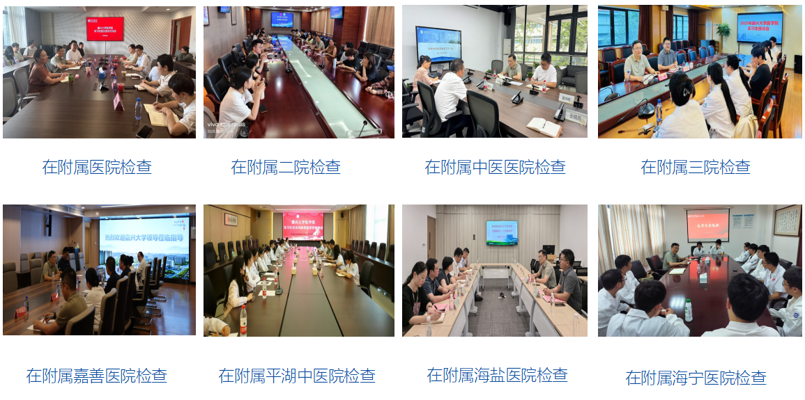 医管办、护理系对附属医院、附属第二医院、附属中医医院、附属第三医院、附属嘉善医院、附属平湖中医院、附属海盐医院和附属海宁医院等8家临床教学基地开展实习教学工作检查。此次检查旨在深入了解2026届临床医学专业和护理学专业实习生的实习安全生产情况、实习教学情况、实习相关制度落实情况,进一步优化实习教学方案,提高实习质量。