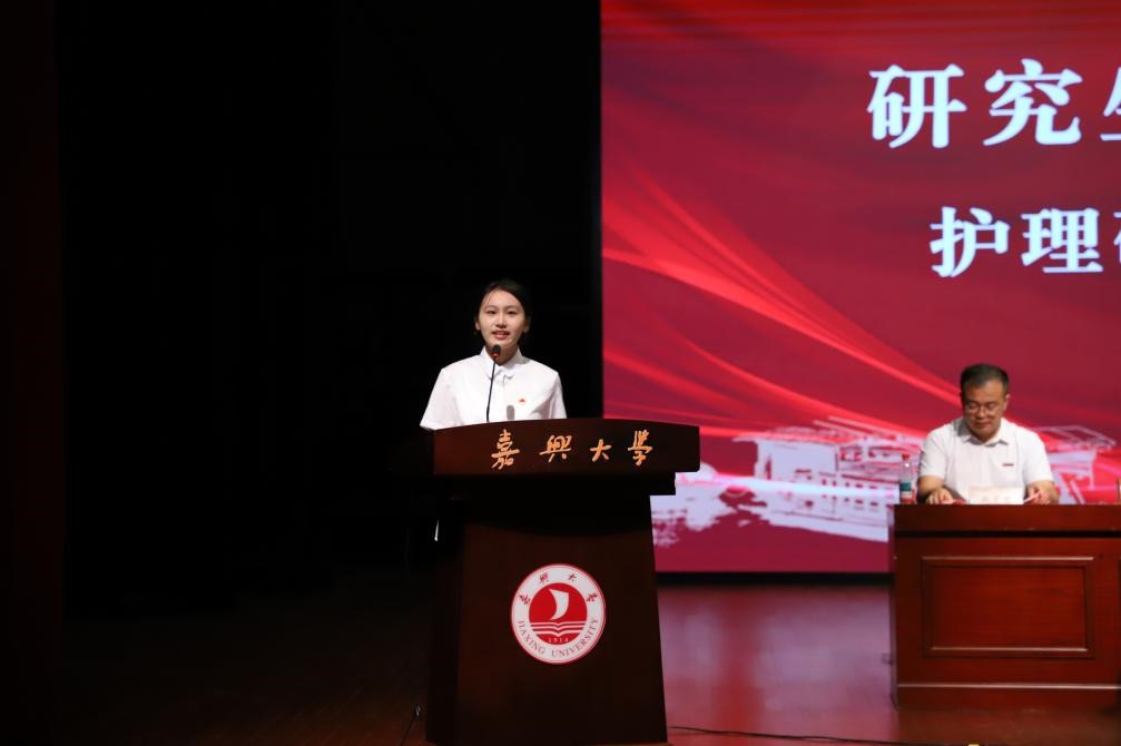 硕士研究生新生代表顾欣雨回顾了在嘉大的成长历程,衷心感谢母校四年来的培养,并围绕做专业的“深耕者”、温暖的“守护者”和彼此的“同行者”三个方面畅谈感悟。她呼吁大家共同成为嘉大探花av