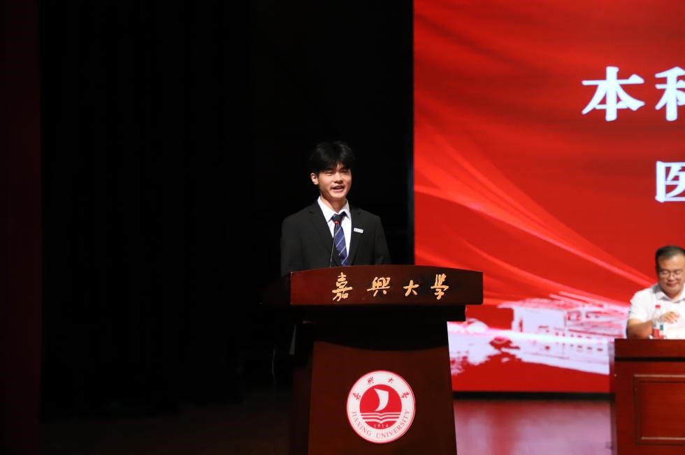 优秀校友顾超分享了自己在嘉大求学的经历与感悟。他从三个方面与新生共勉:一要明确方向、坚持不懈,扎实掌握医学知识,做到内化于心、外化于行;二要勇于创新、攀登高峰,不仅做知识的学习者,更做未来的创造者;三要仁心仁术、务实敬业,以人文关怀温暖病患,用共情守护生命尊严。