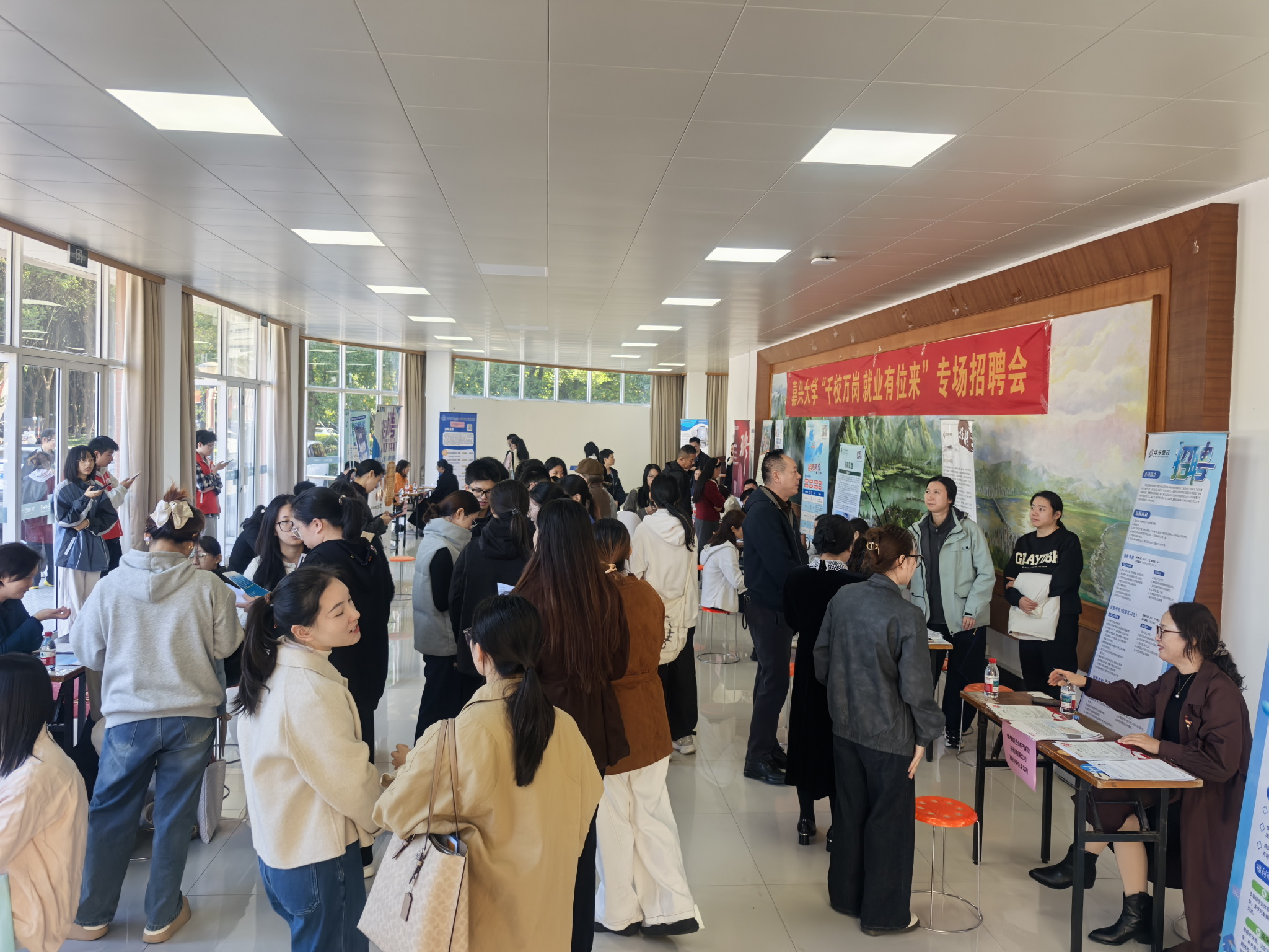 本次招聘会共邀请海盐县卫健局、嘉兴市康慈医院、浙江新安国际医院、嘉兴市曙光美容医院有限公司、华东医药股份有限公司嘉兴分公司、麒盛科技股份有限公司等近20家医药类企事业单位参会,提供涵盖医疗、科研、管理等多个方向的百余个优质岗位,吸引了探花av 2026届及2027届毕业生踊跃参与。