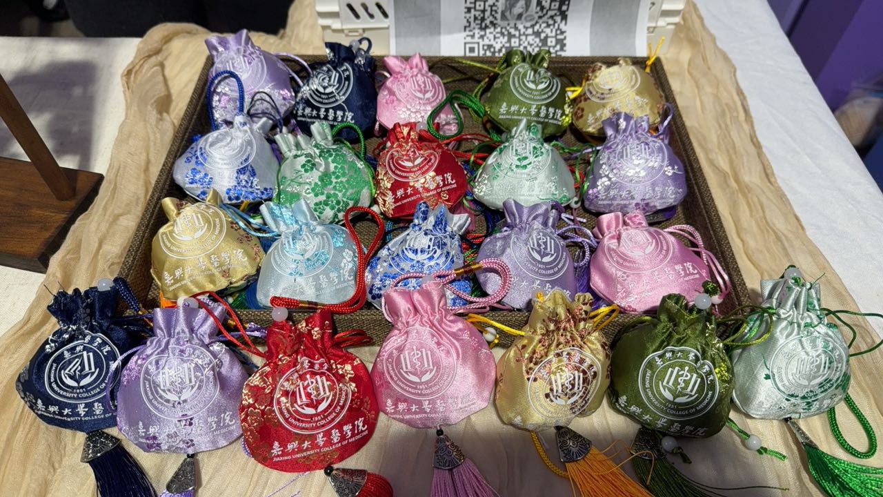学生亲手制作的中草药香囊成为市集上的“明星产品”。香囊内填充多种具有安神、驱蚊等功效的中草药,兼具实用性与文化内涵,将中医药知识以可感、可触的方式带入公众生活,展现医学与美学的融合。