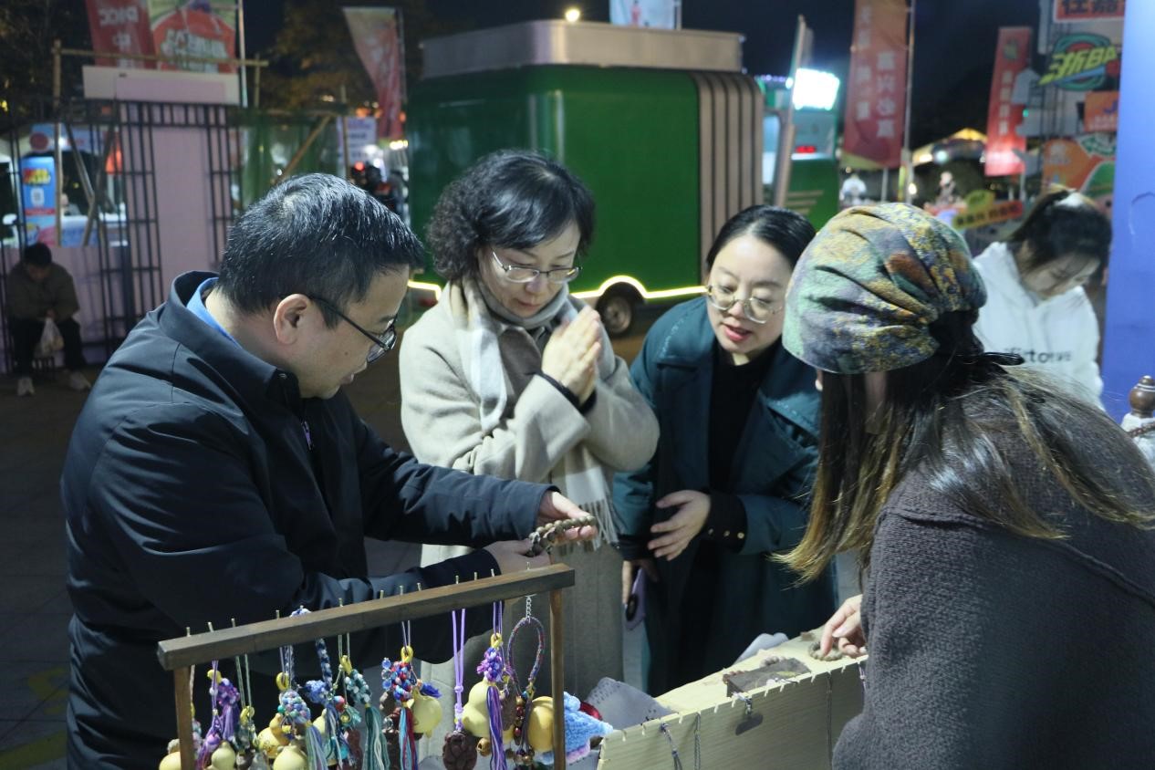 副校长张琦、创新创业学院院长黄风立亲临现场指导,与同学们亲切交流,详细了解各类文创产品的设计理念与制作过程。
